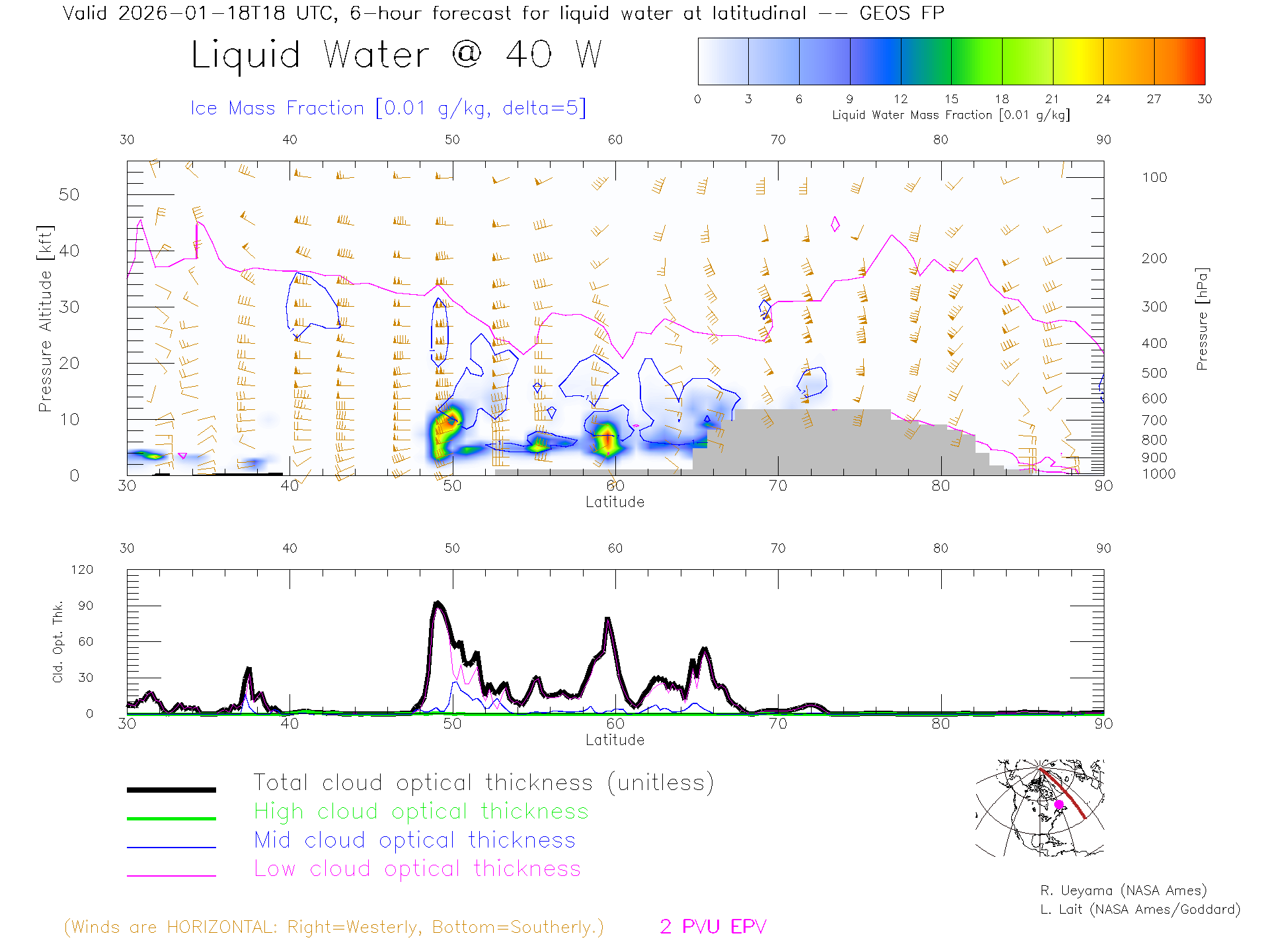 GEOS Forecast Cloud Water Content X-Section (40 W)