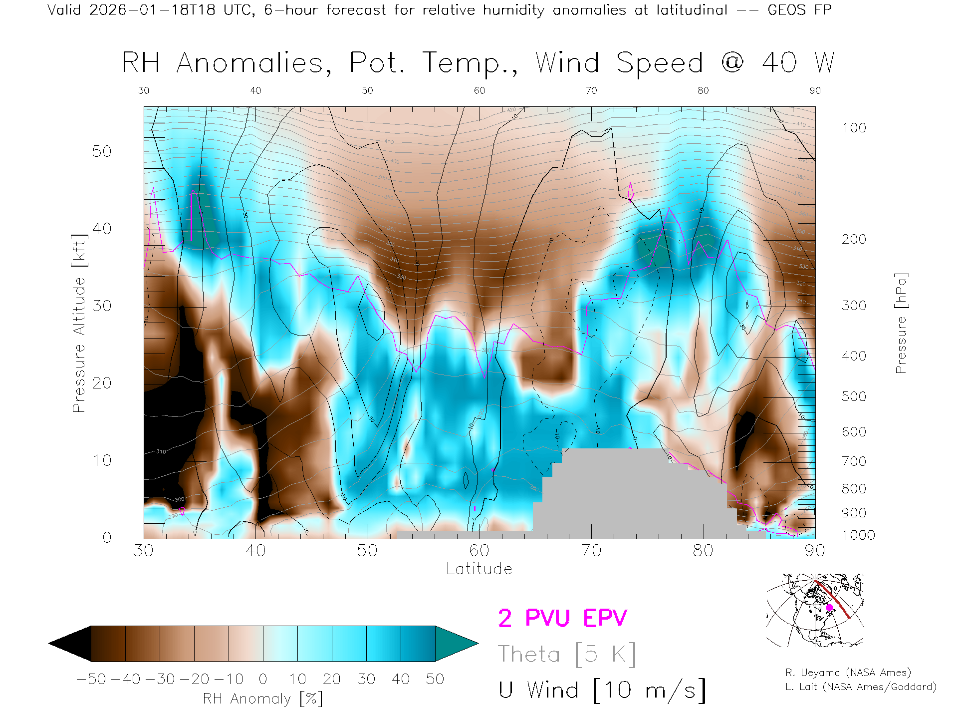 GEOS Forecast Rel. Hum. X-Section (40 W)