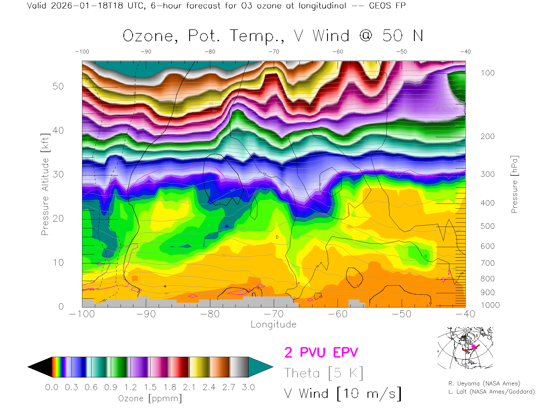 GEOS Forecast Ozone X-Section (50 N)