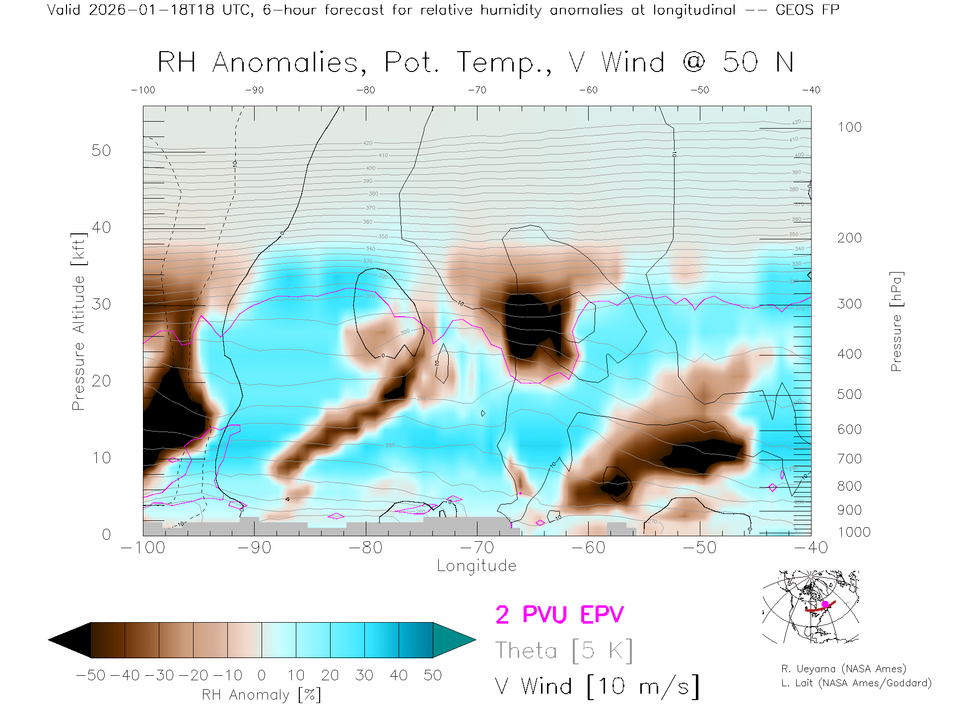 GEOS Forecast Rel. Hum. X-Section (50 N)