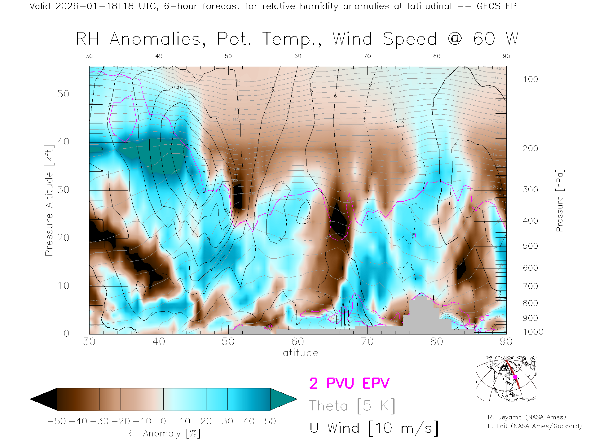 GEOS Forecast Rel. Hum. X-Section (60 W)