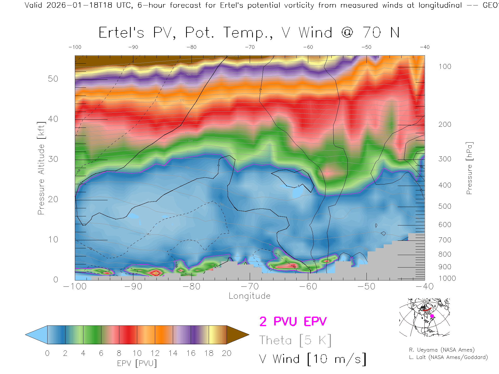 GEOS Forecast PV X-Section (70 N)