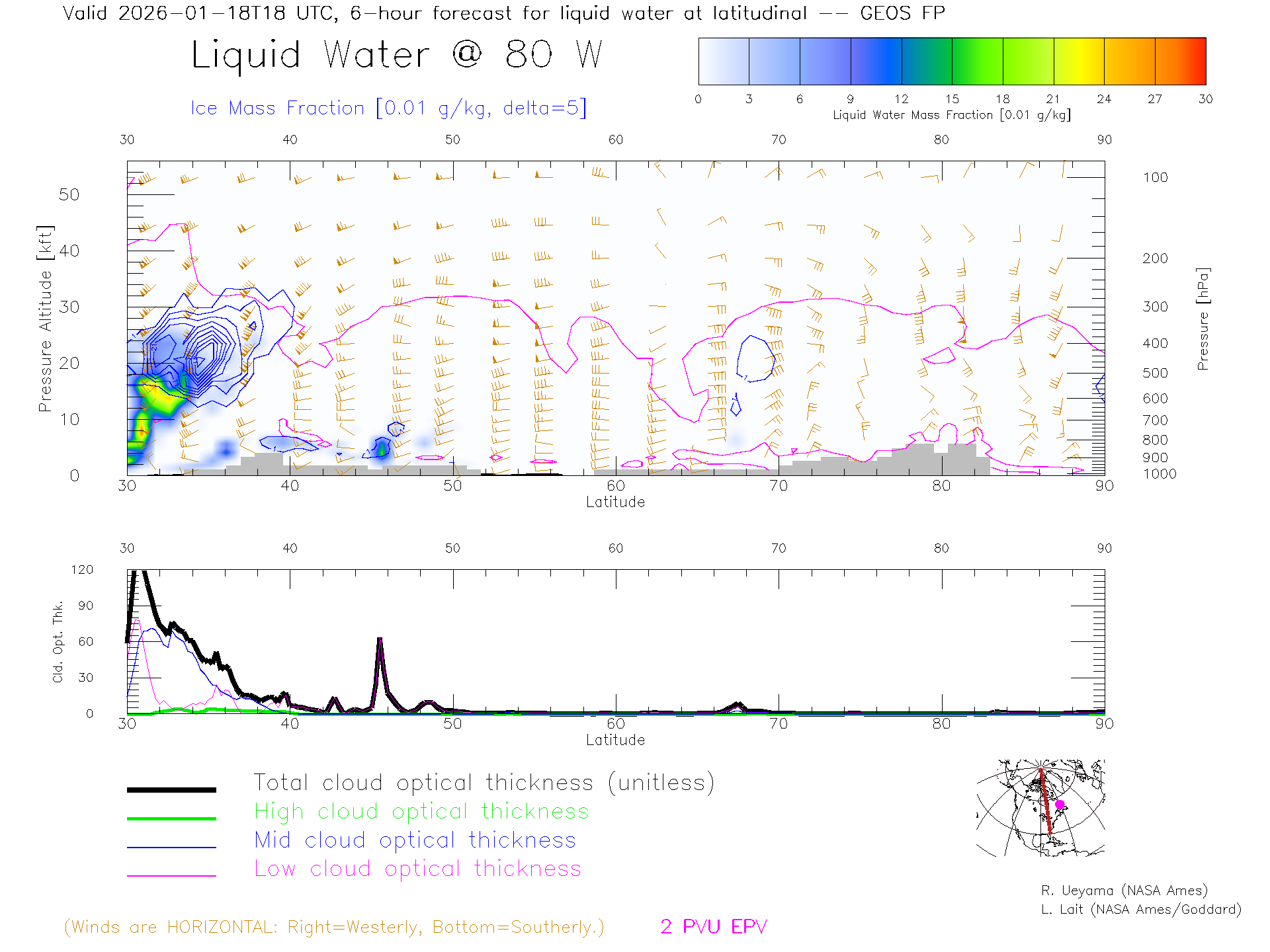 GEOS Forecast Cloud Water Content X-Section (80 W)