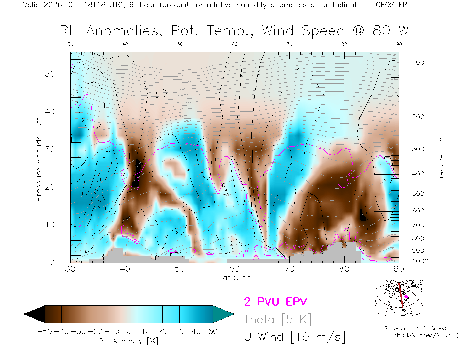 GEOS Forecast Rel. Hum. X-Section (80 W)