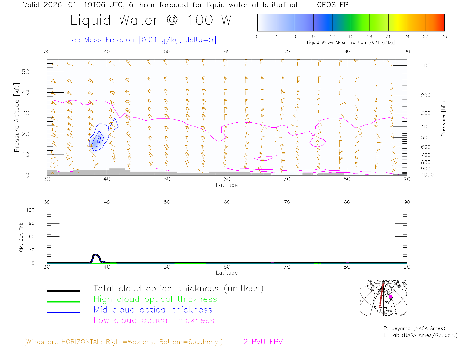 GEOS Forecast Cloud Water Content X-Section (100 W)