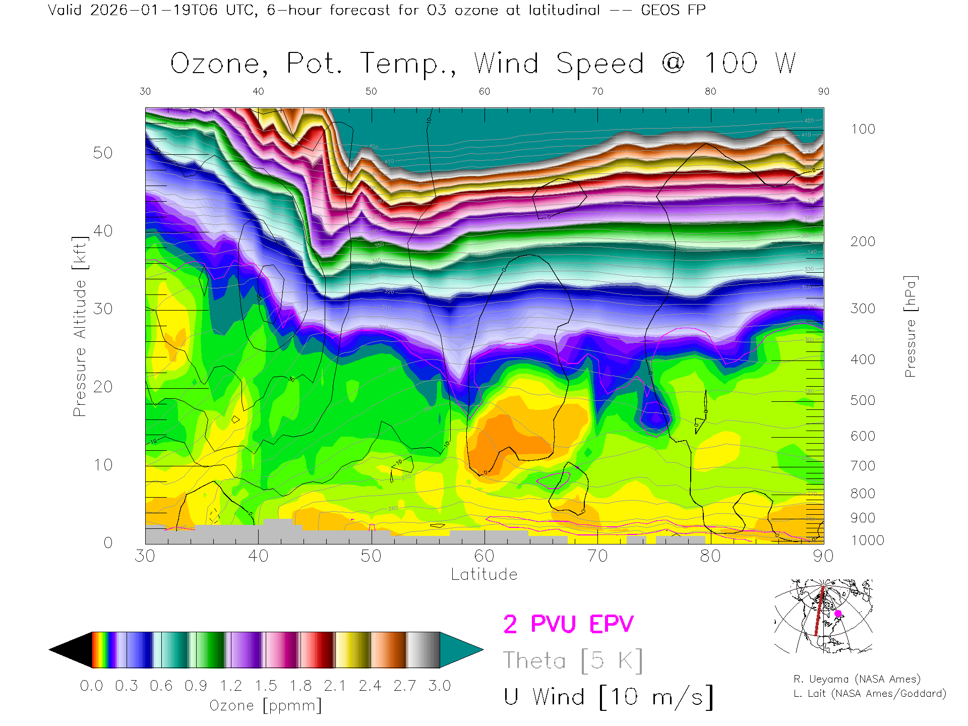 GEOS Forecast Ozone X-Section (100 W)