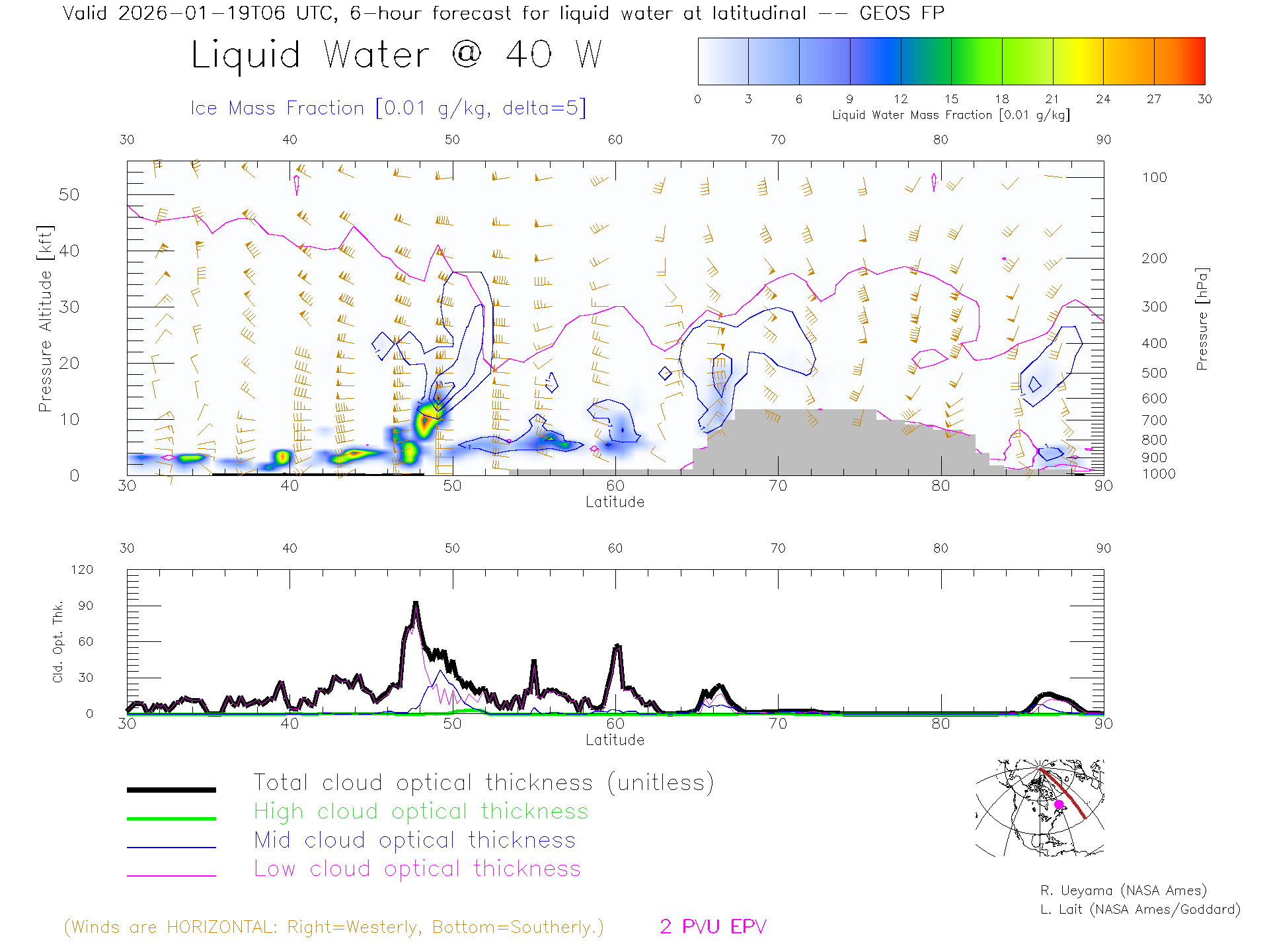 GEOS Forecast Cloud Water Content X-Section (40 W)