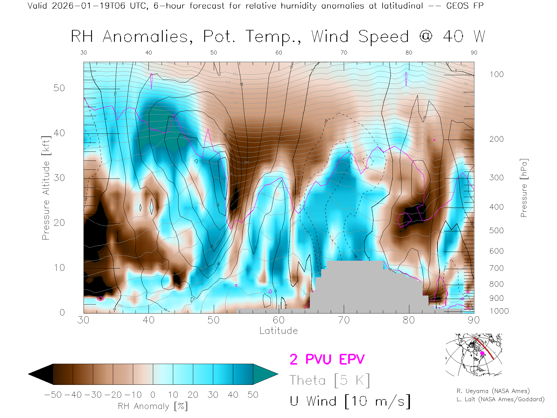 GEOS Forecast Rel. Hum. X-Section (40 W)