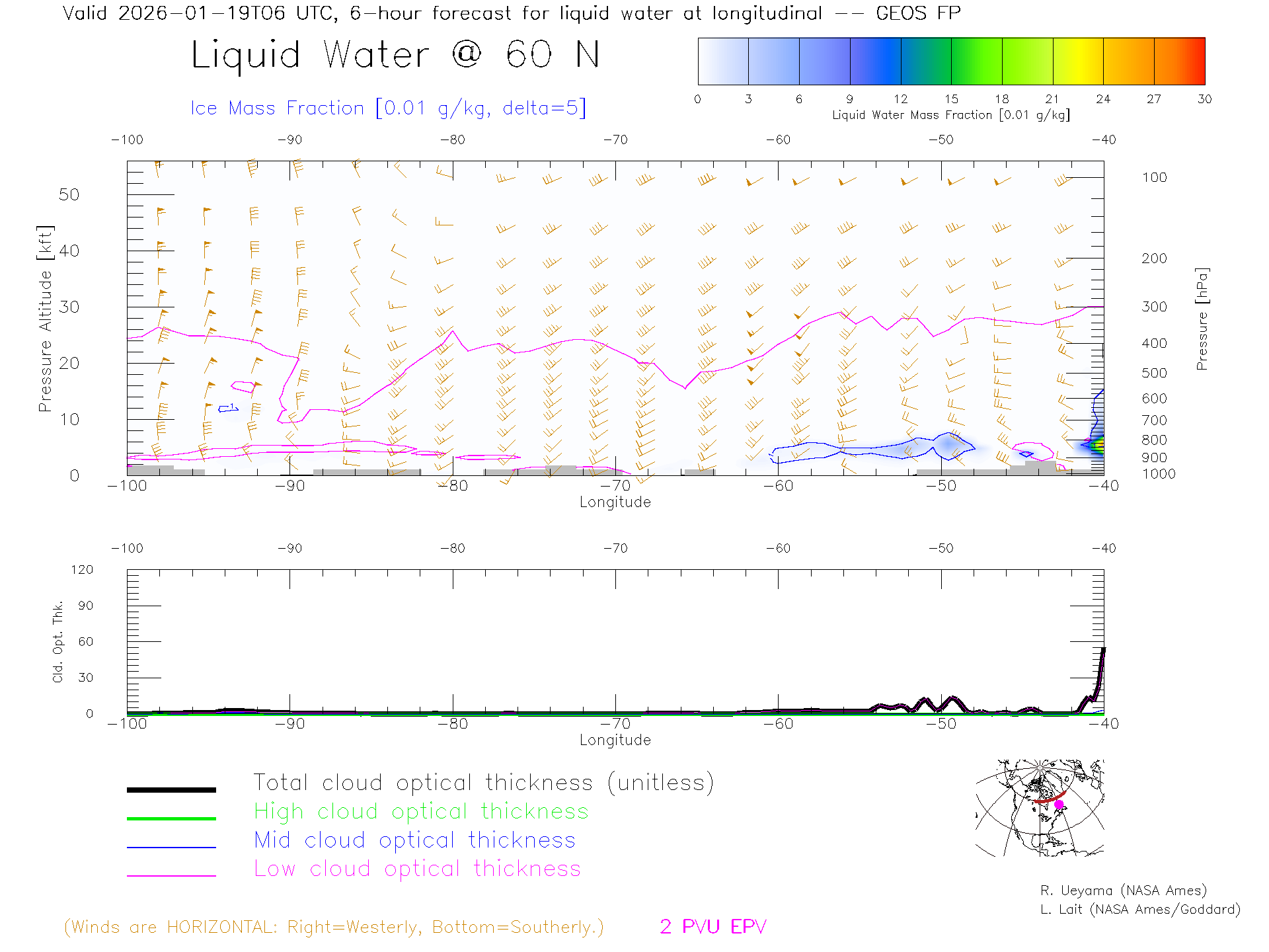 GEOS Forecast Cloud Water Content X-Section (60 N)