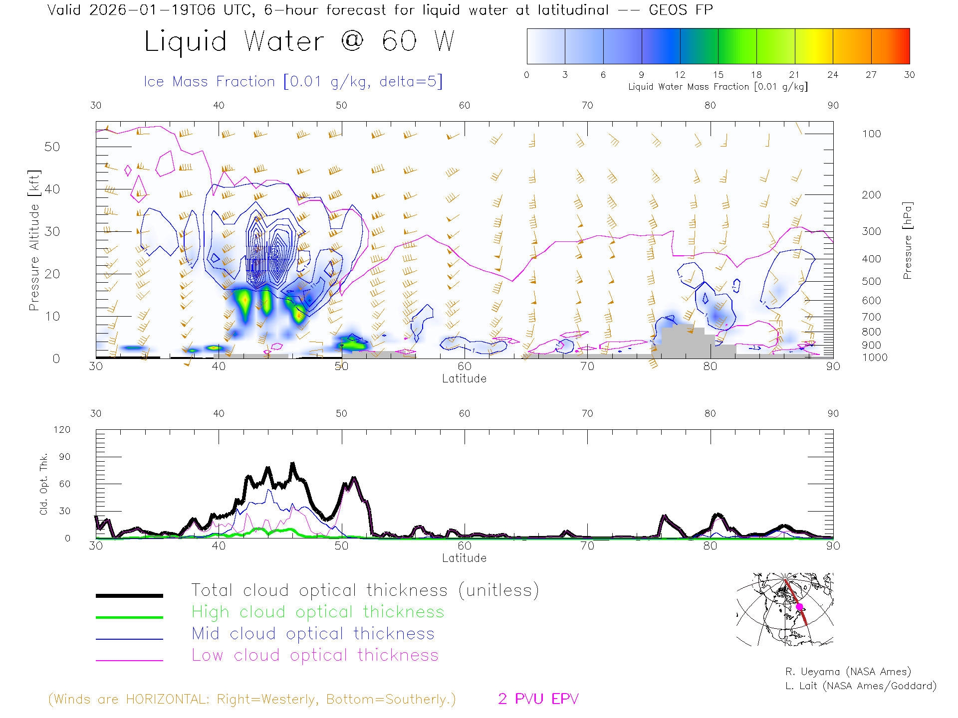 GEOS Forecast Cloud Water Content X-Section (60 W)