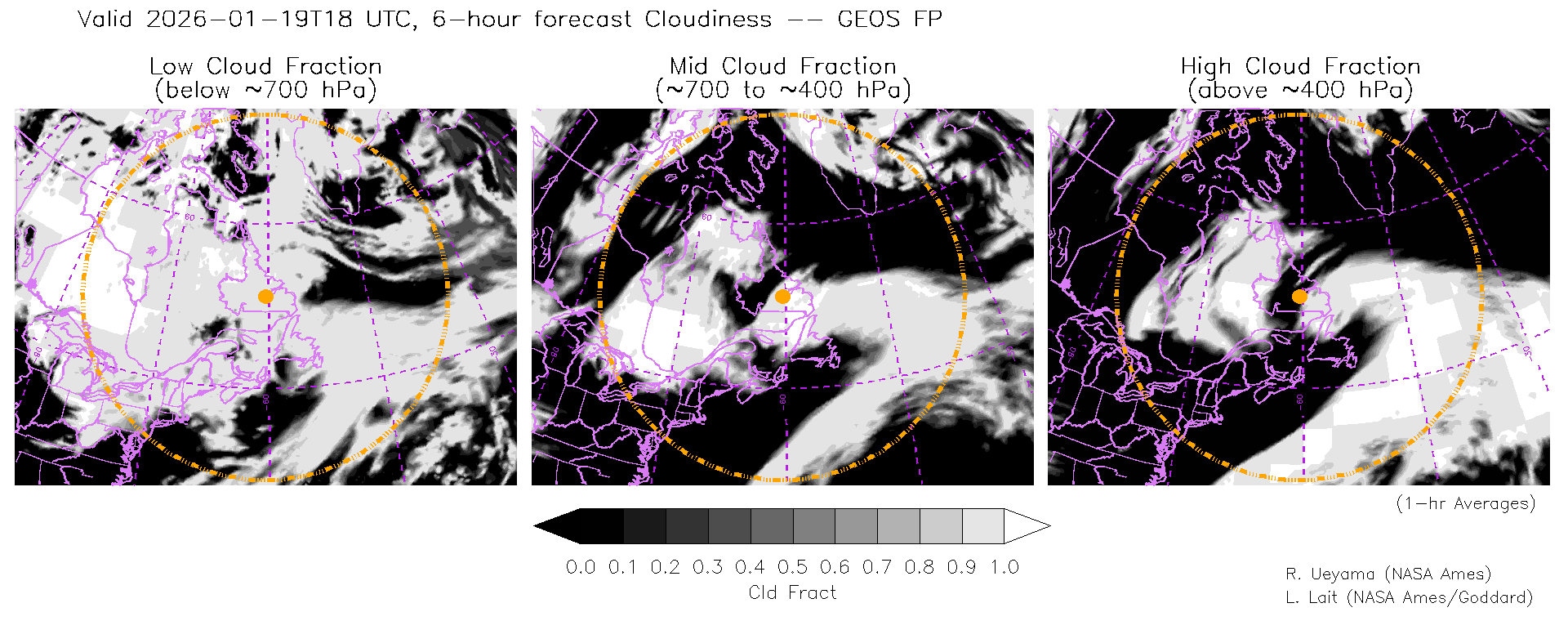 GEOS Forecast Cloud Fraction (High, Mid, Low)