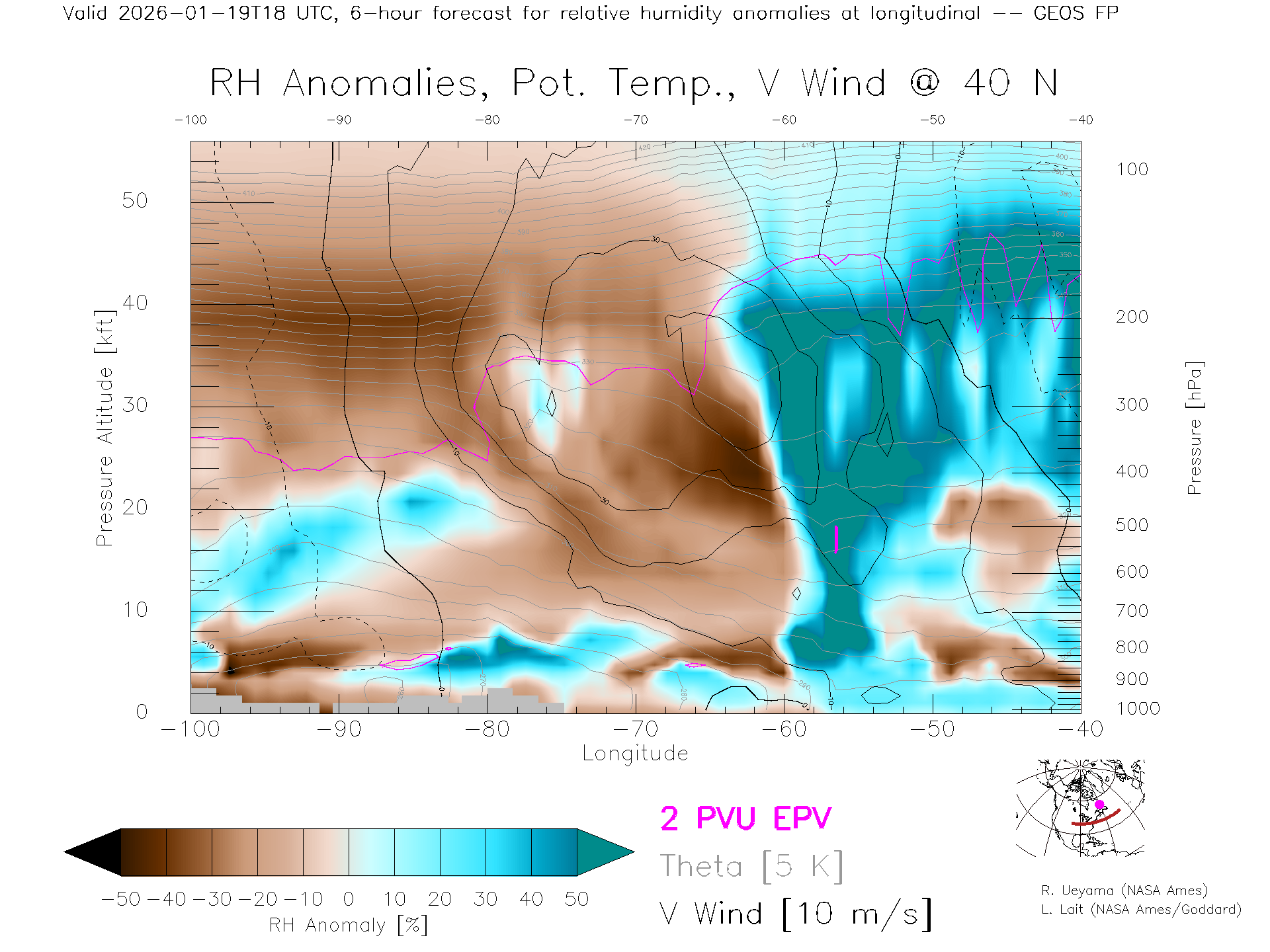 GEOS Forecast Rel. Hum. X-Section (40 N)