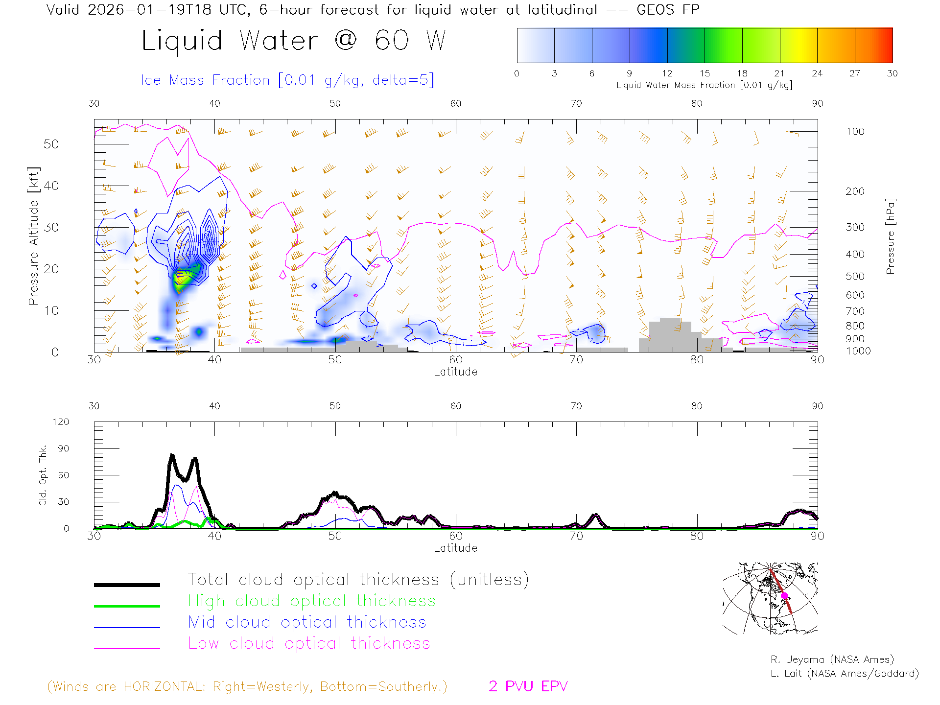 GEOS Forecast Cloud Water Content X-Section (60 W)