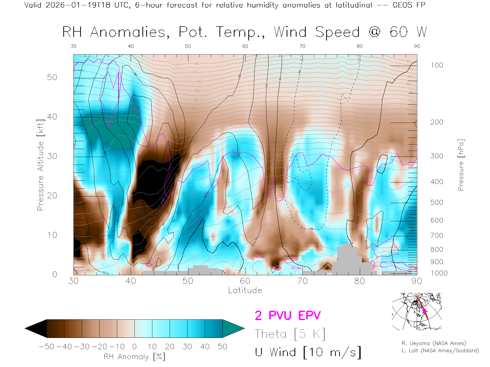 GEOS Forecast Rel. Hum. X-Section (60 W)