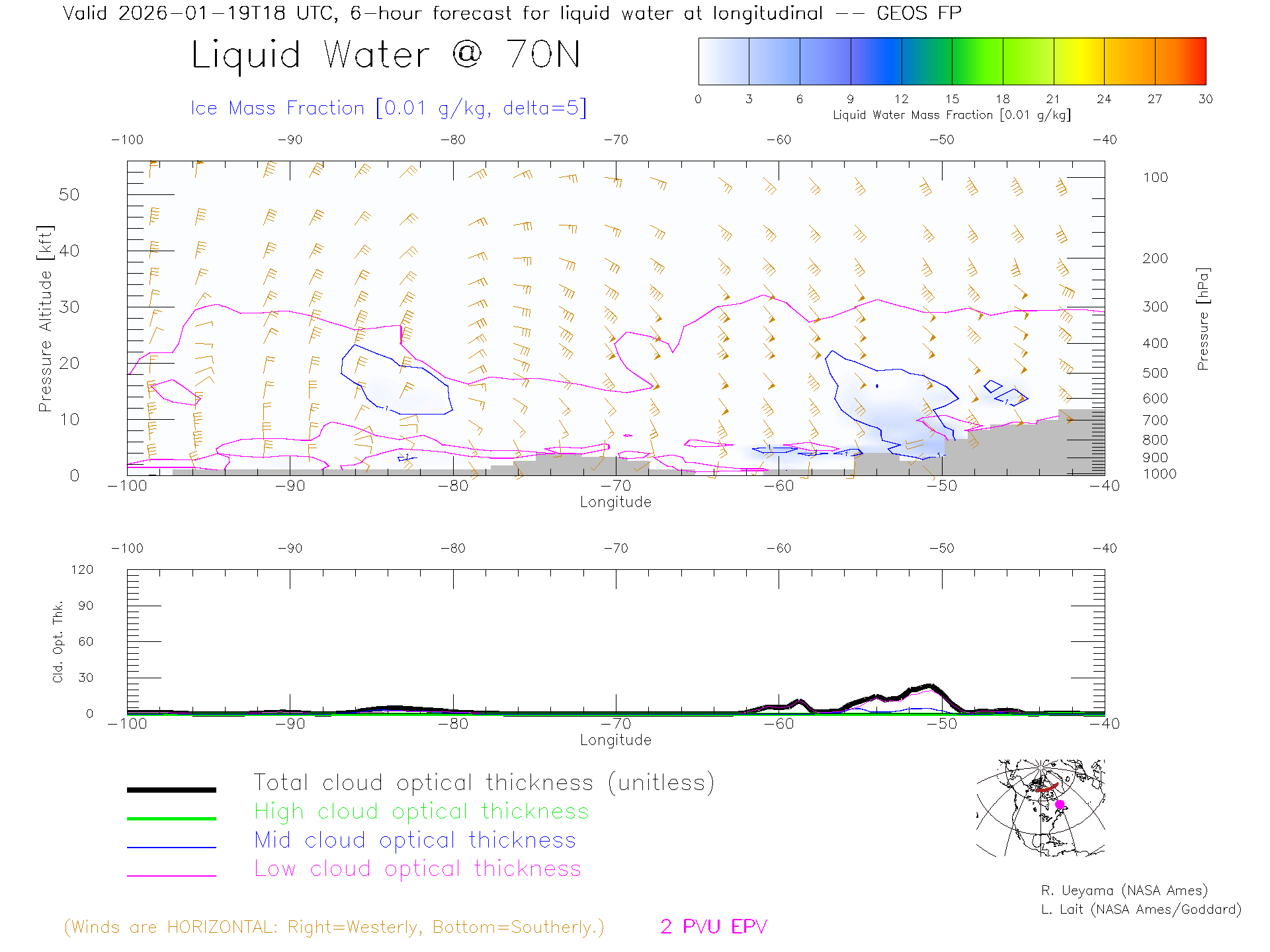 GEOS Forecast Cloud Water Content X-Section (70 N)