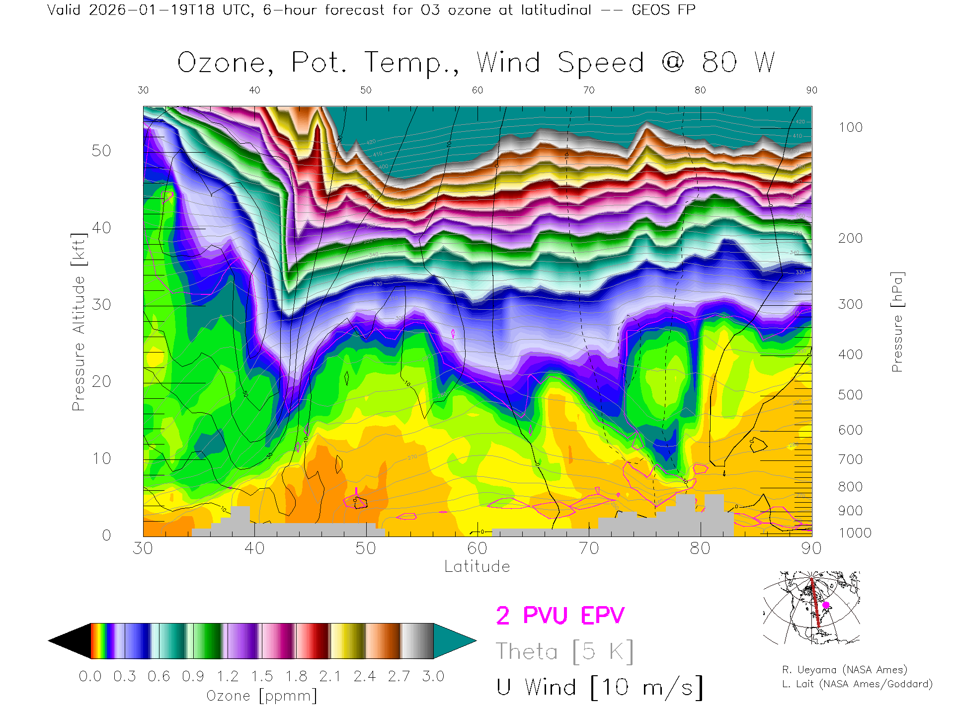 GEOS Forecast Ozone X-Section (80 W)
