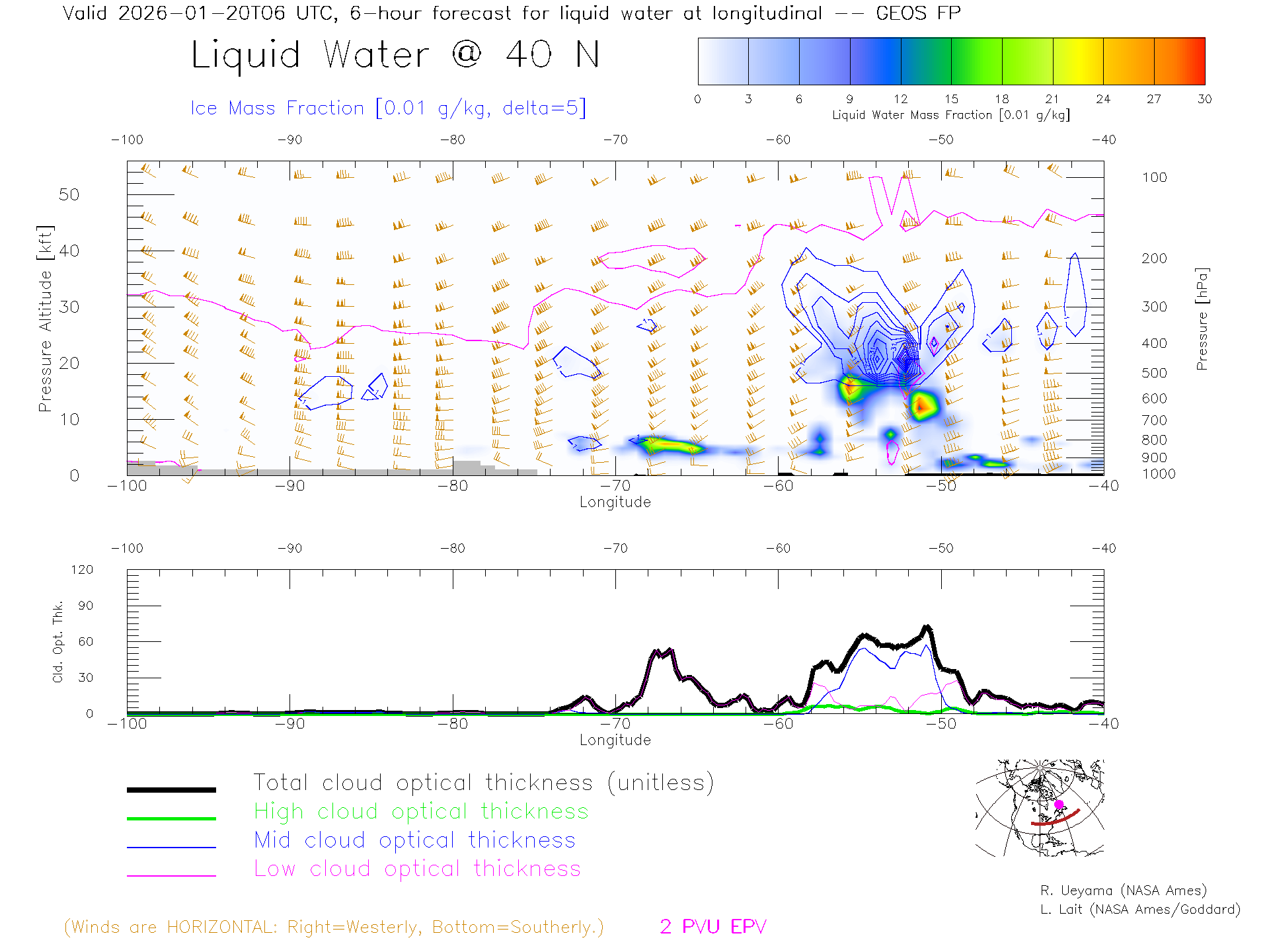 GEOS Forecast Cloud Water Content X-Section (40 N)