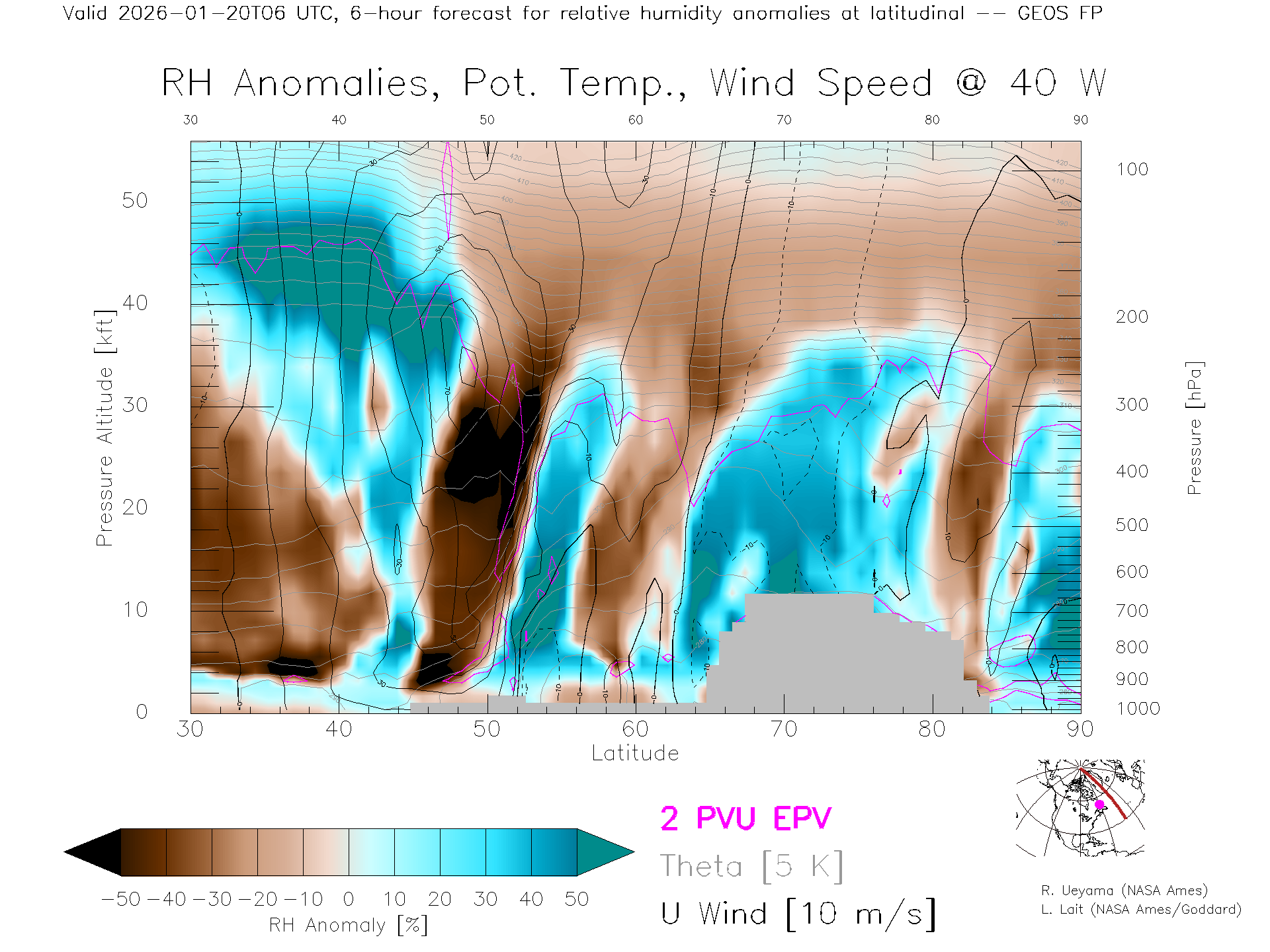 GEOS Forecast Rel. Hum. X-Section (40 W)