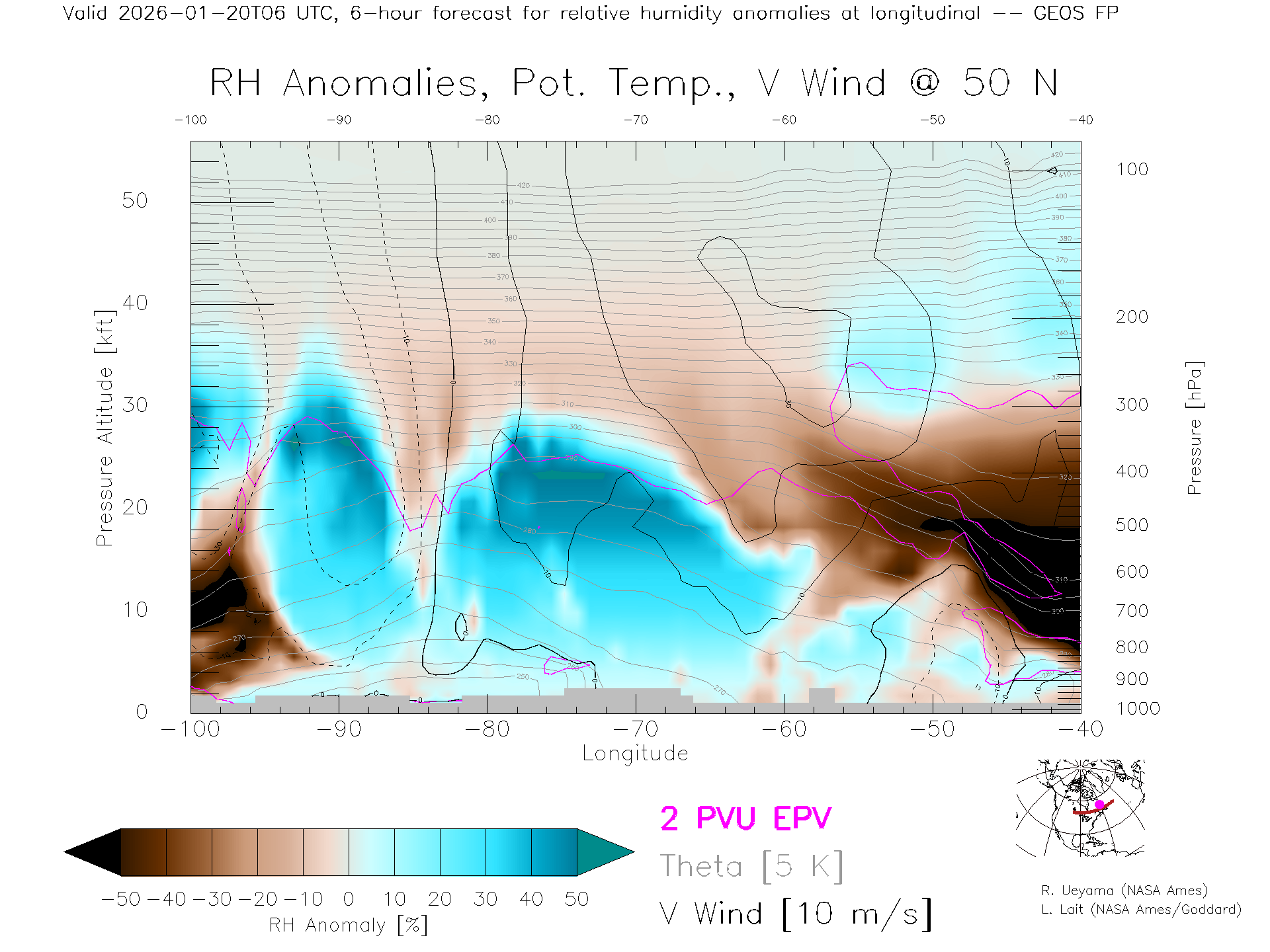 GEOS Forecast Rel. Hum. X-Section (50 N)