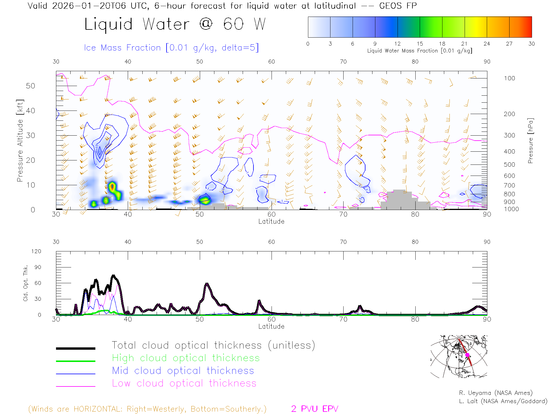 GEOS Forecast Cloud Water Content X-Section (60 W)