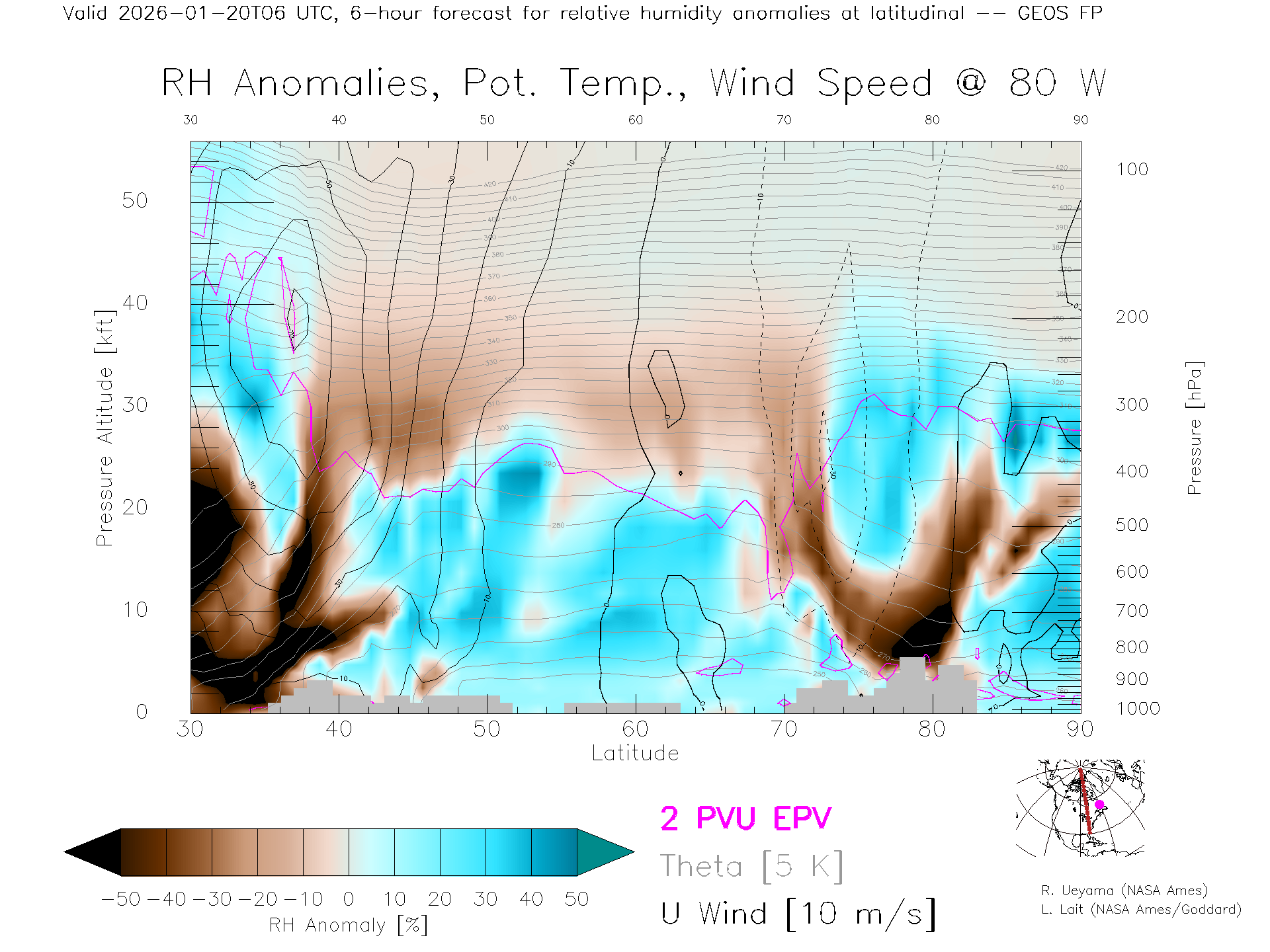 GEOS Forecast Rel. Hum. X-Section (80 W)