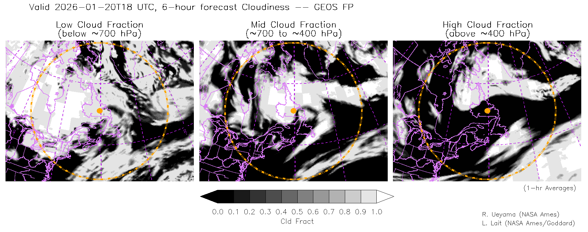 GEOS Forecast Cloud Fraction (High, Mid, Low)