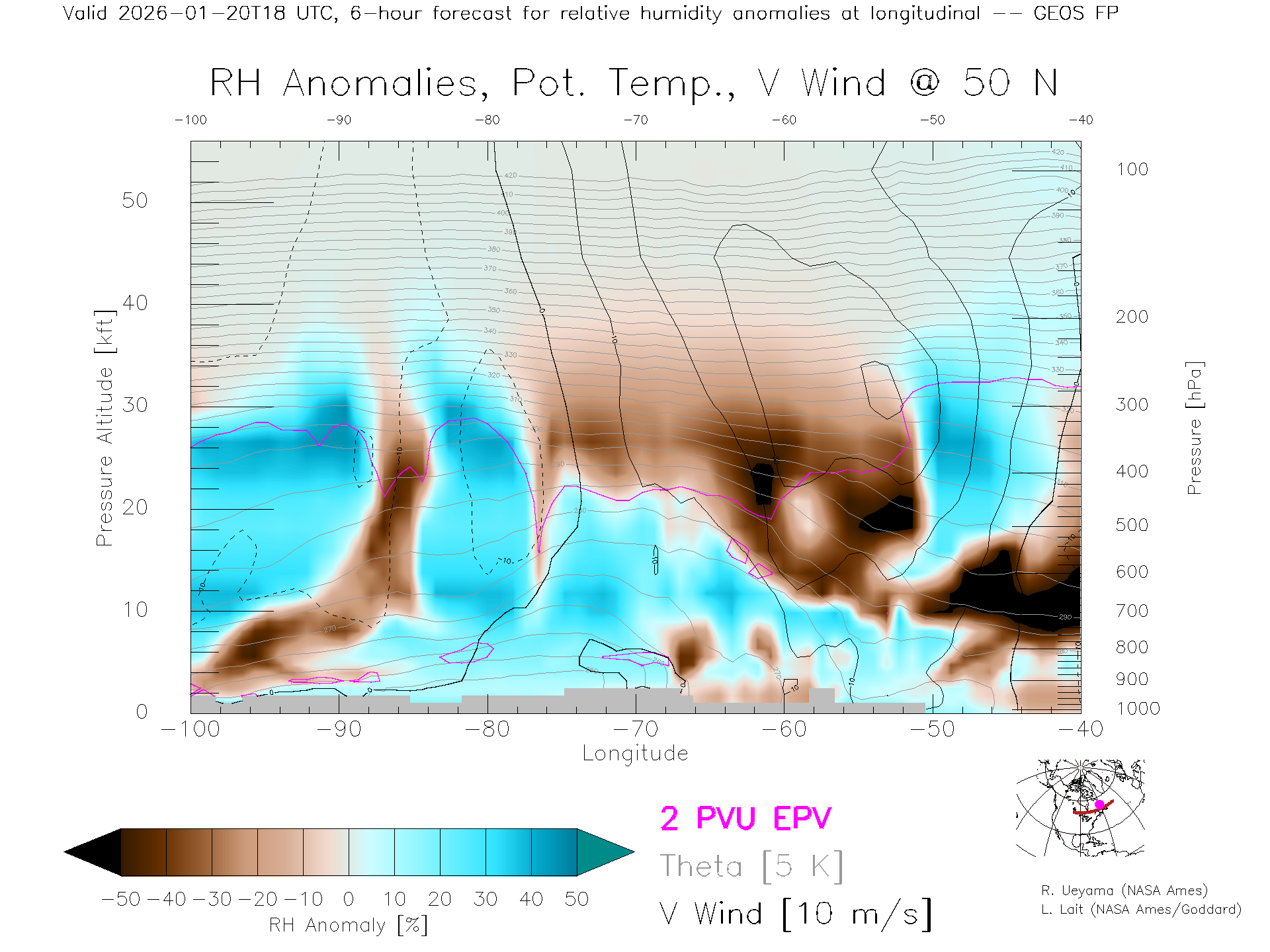 GEOS Forecast Rel. Hum. X-Section (50 N)