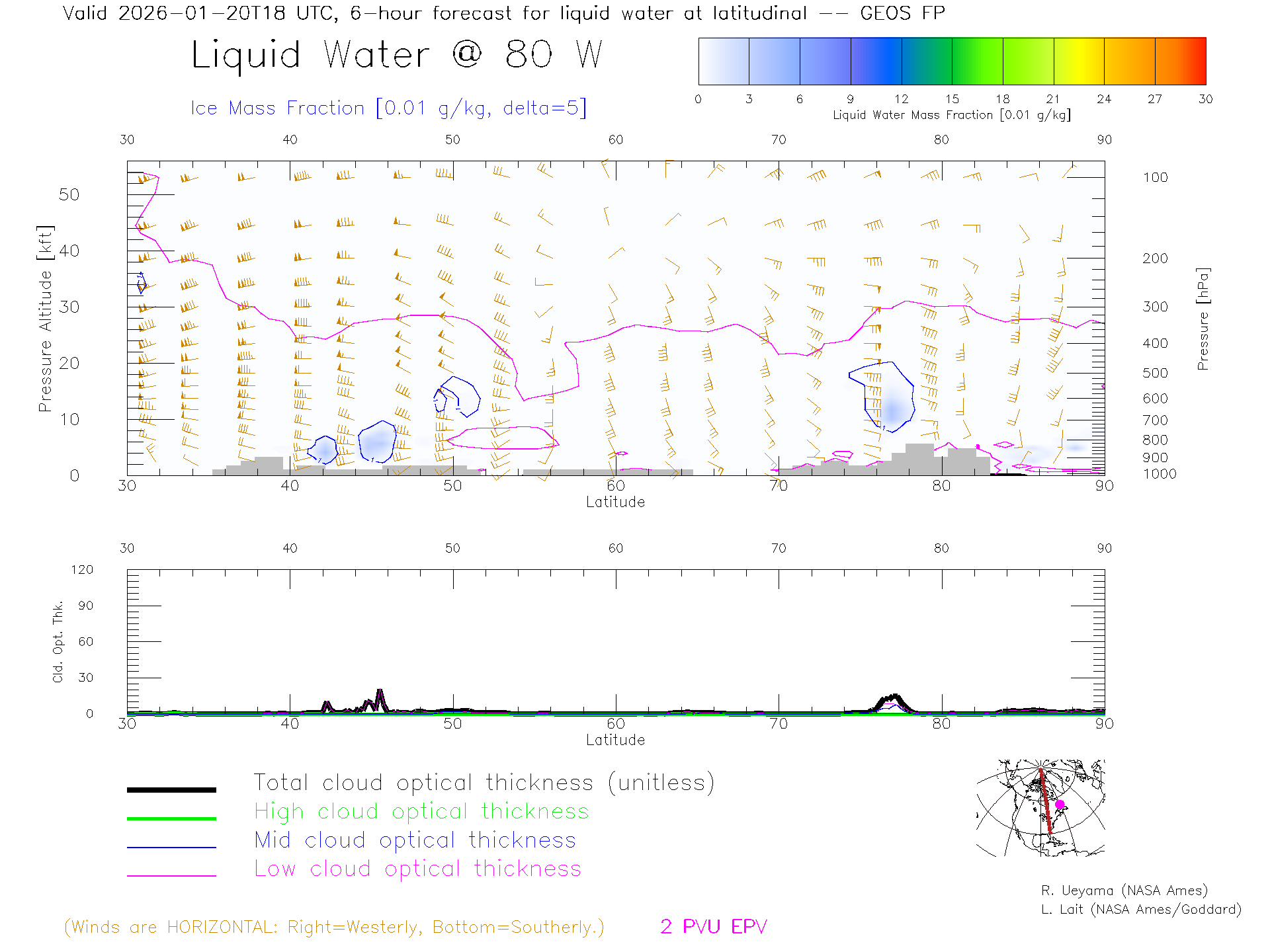 GEOS Forecast Cloud Water Content X-Section (80 W)
