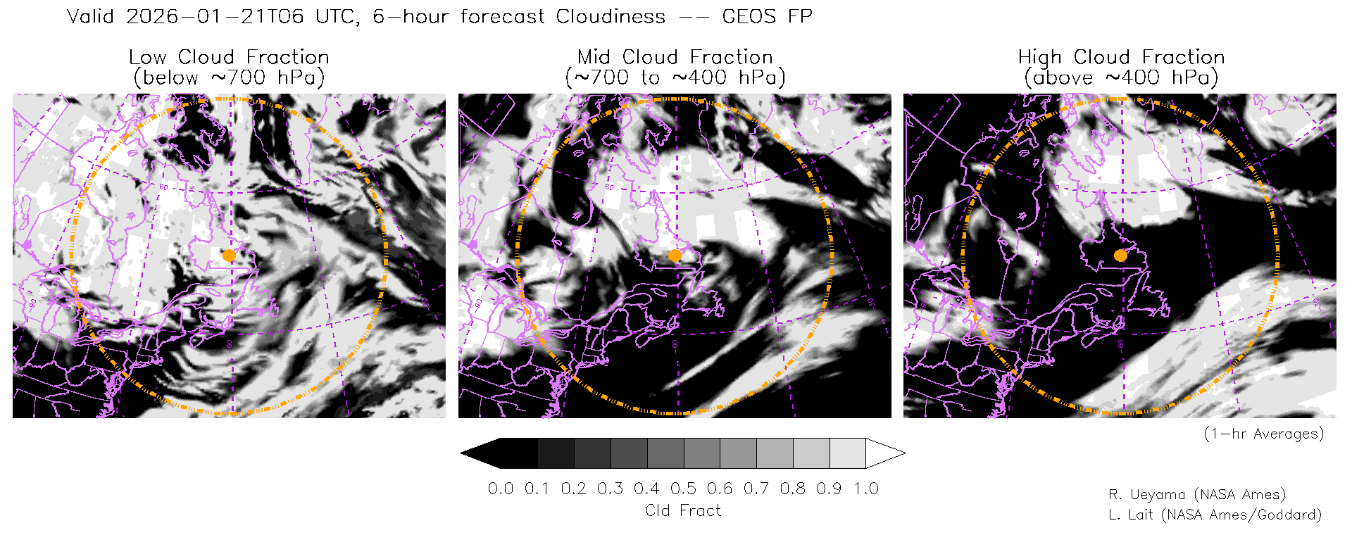 GEOS Forecast Cloud Fraction (High, Mid, Low)