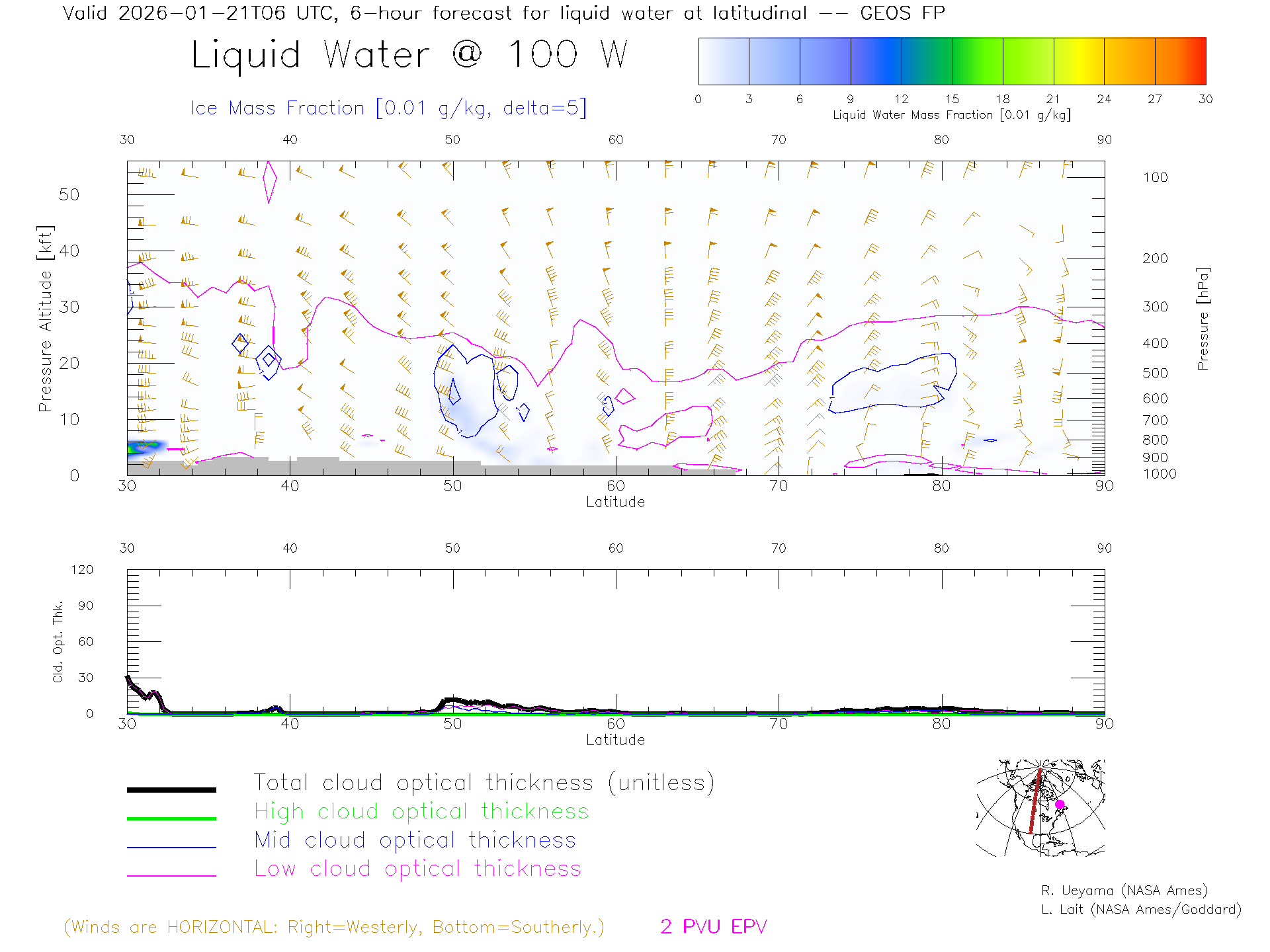 GEOS Forecast Cloud Water Content X-Section (100 W)