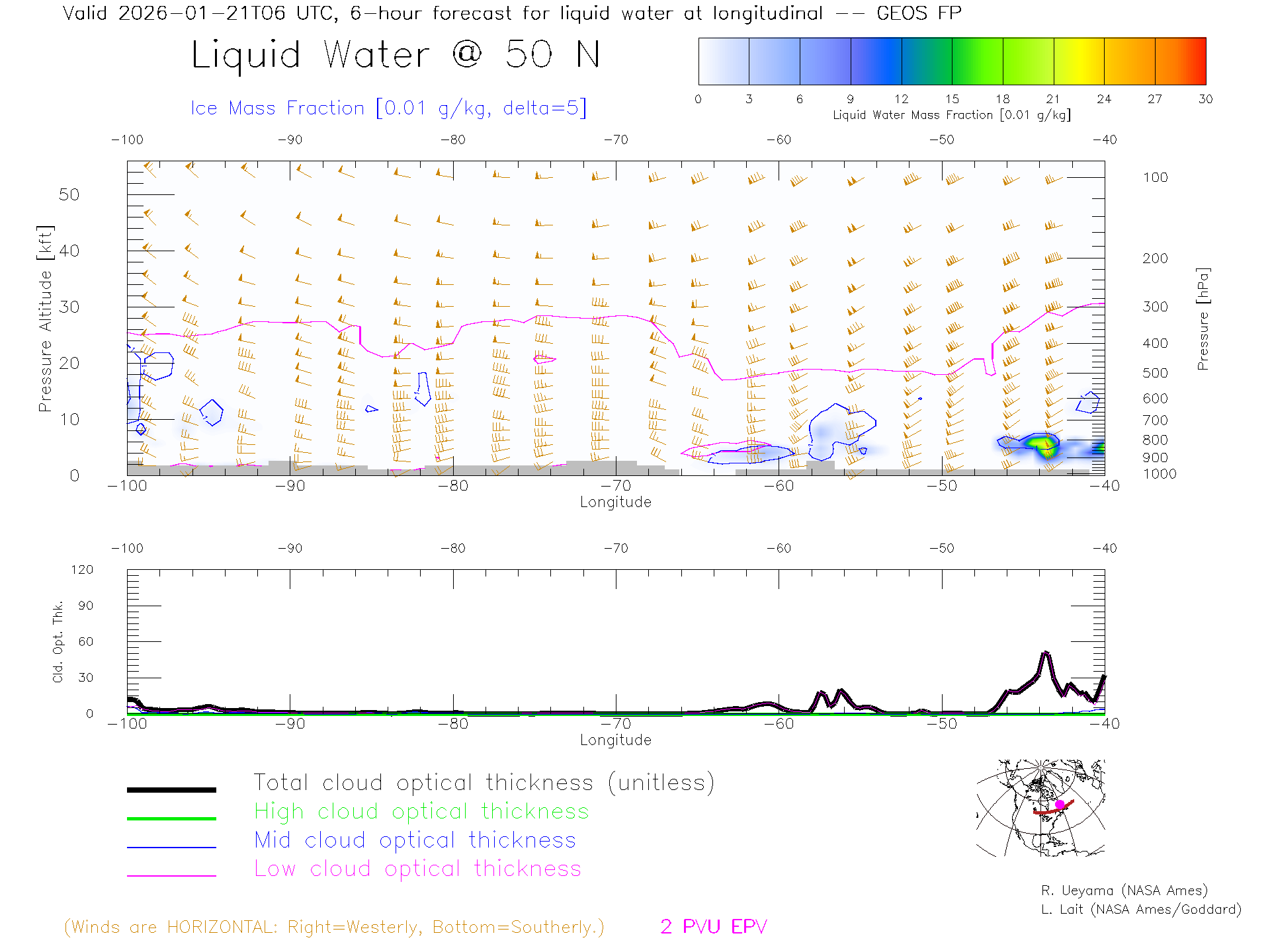 GEOS Forecast Cloud Water Content X-Section (50 N)