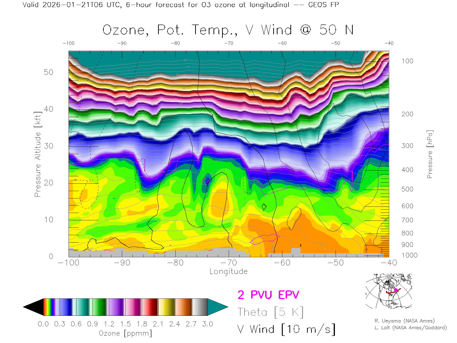 GEOS Forecast Ozone X-Section (50 N)