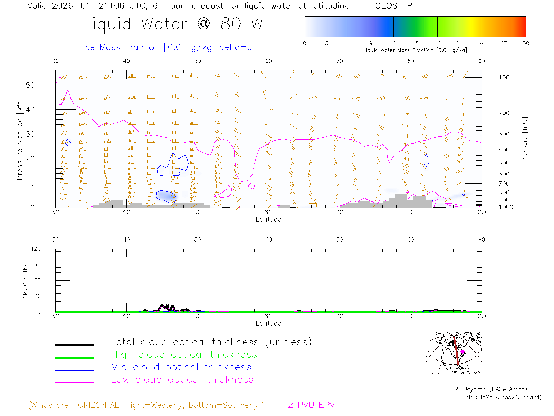 GEOS Forecast Cloud Water Content X-Section (80 W)
