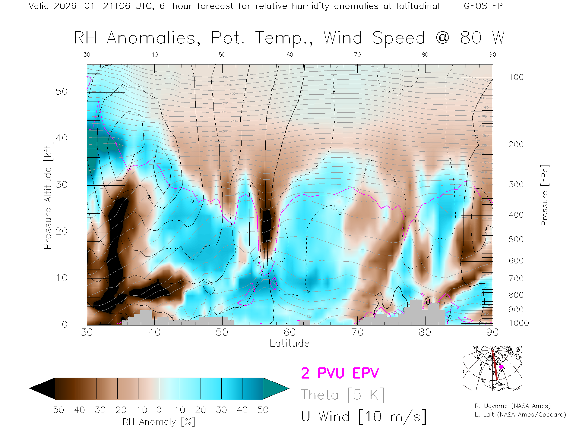 GEOS Forecast Rel. Hum. X-Section (80 W)
