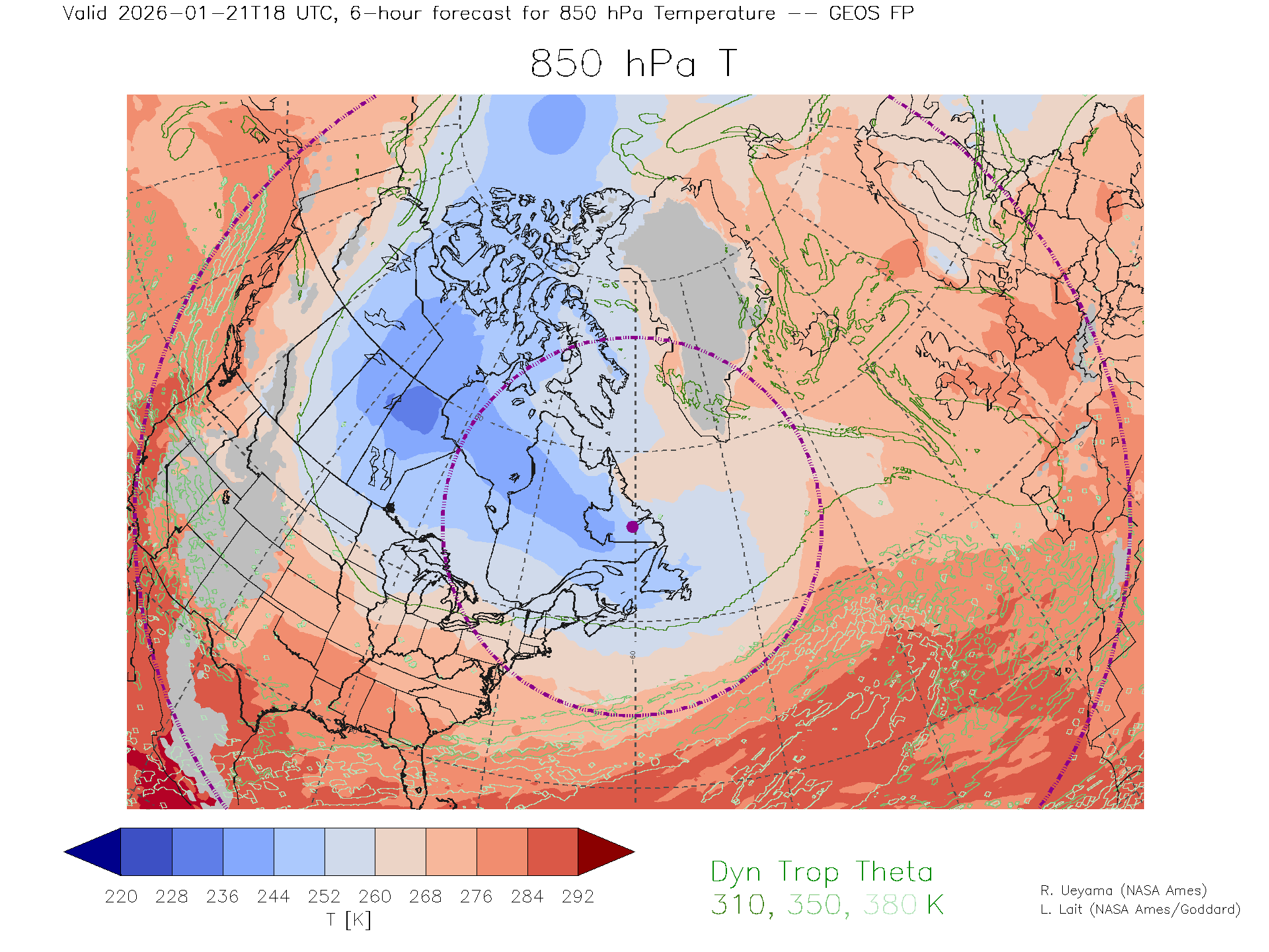 GEOS Forecast 850 hPa Temp.