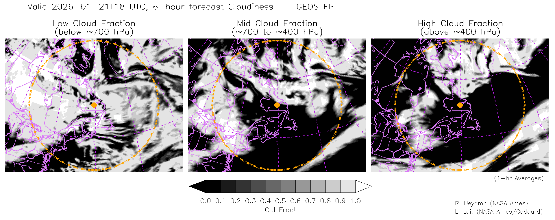 GEOS Forecast Cloud Fraction (High, Mid, Low)