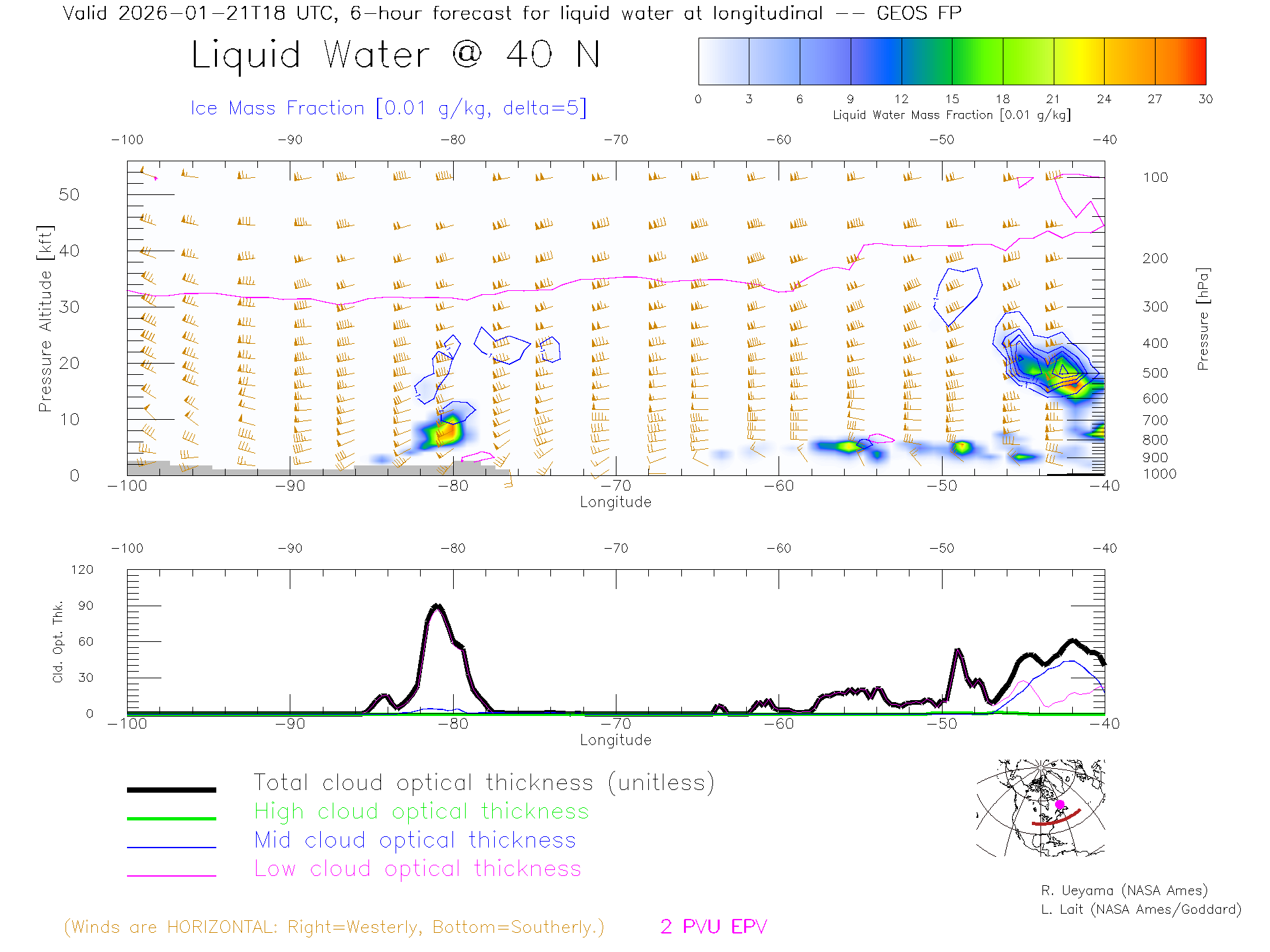 GEOS Forecast Cloud Water Content X-Section (40 N)