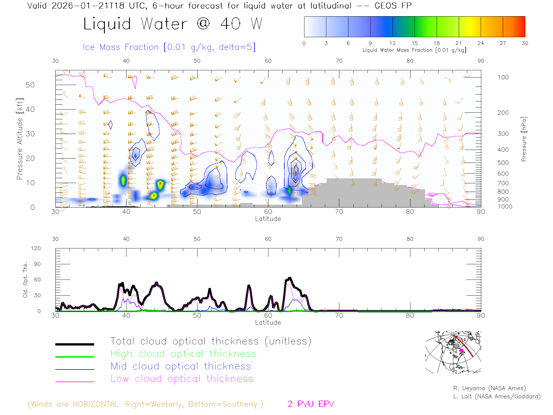 GEOS Forecast Cloud Water Content X-Section (40 W)