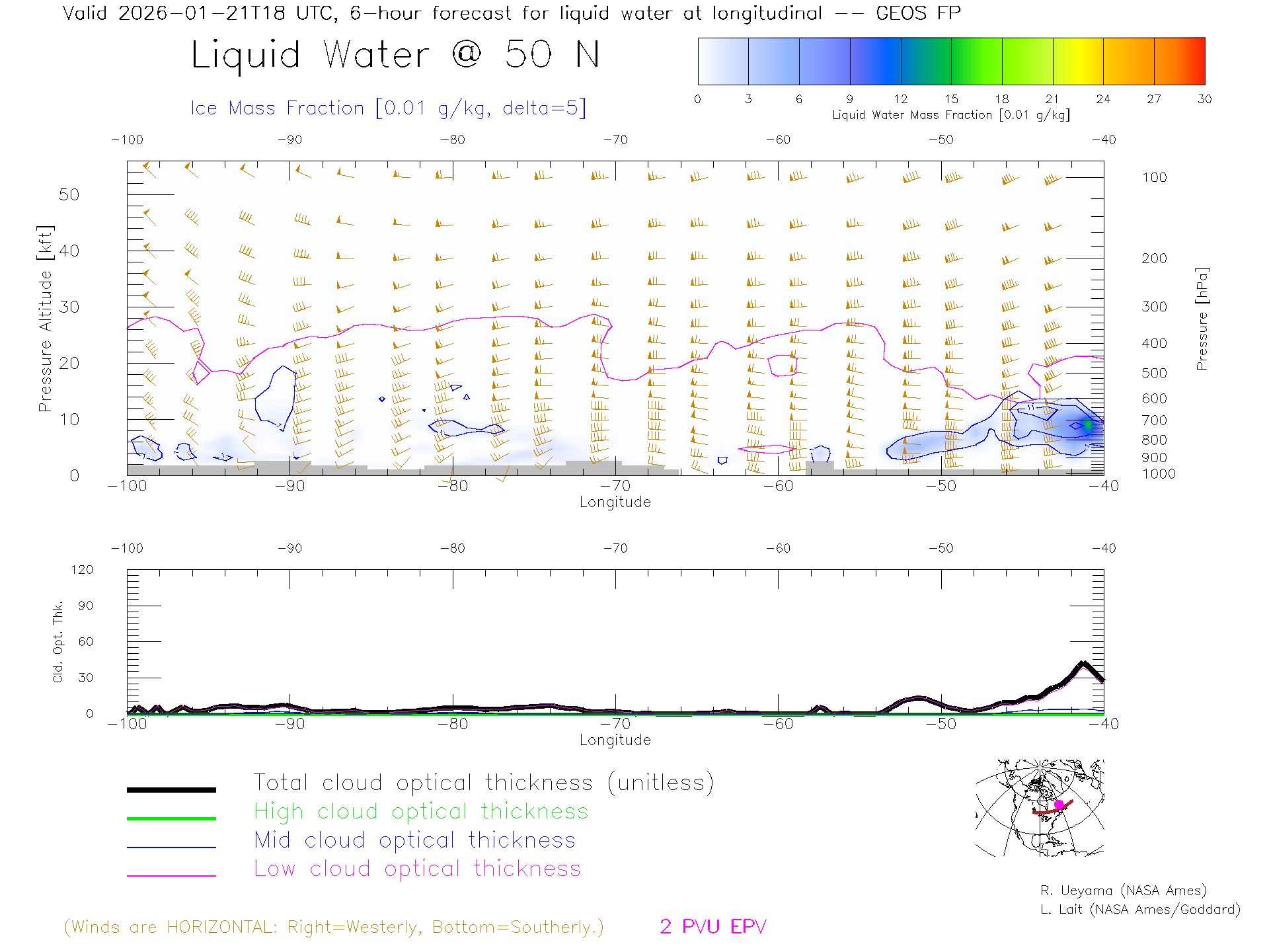 GEOS Forecast Cloud Water Content X-Section (50 N)