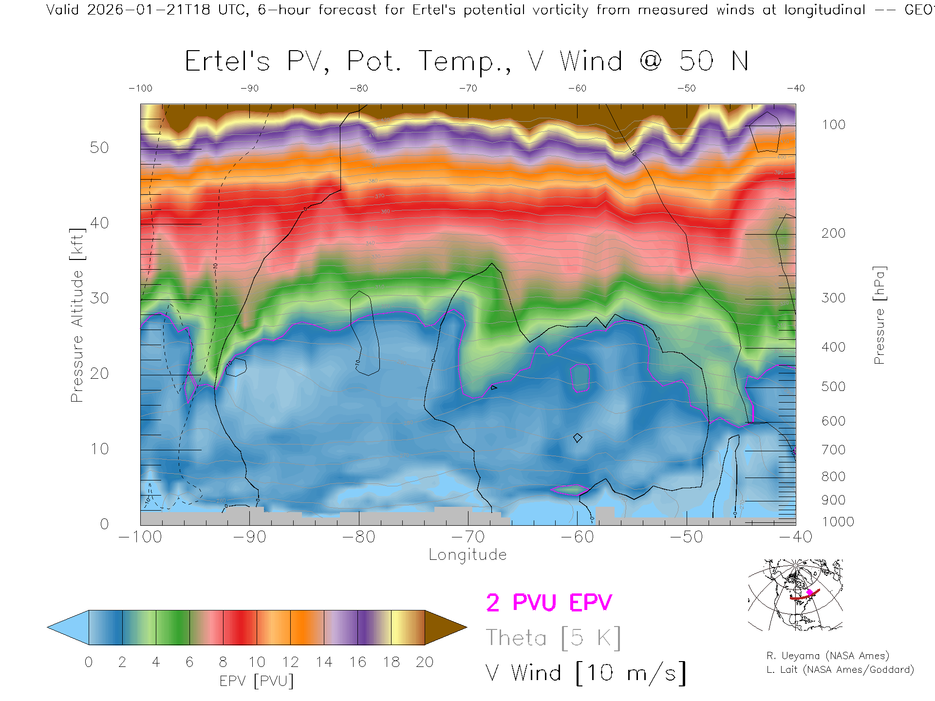 GEOS Forecast PV X-Section (50 N)