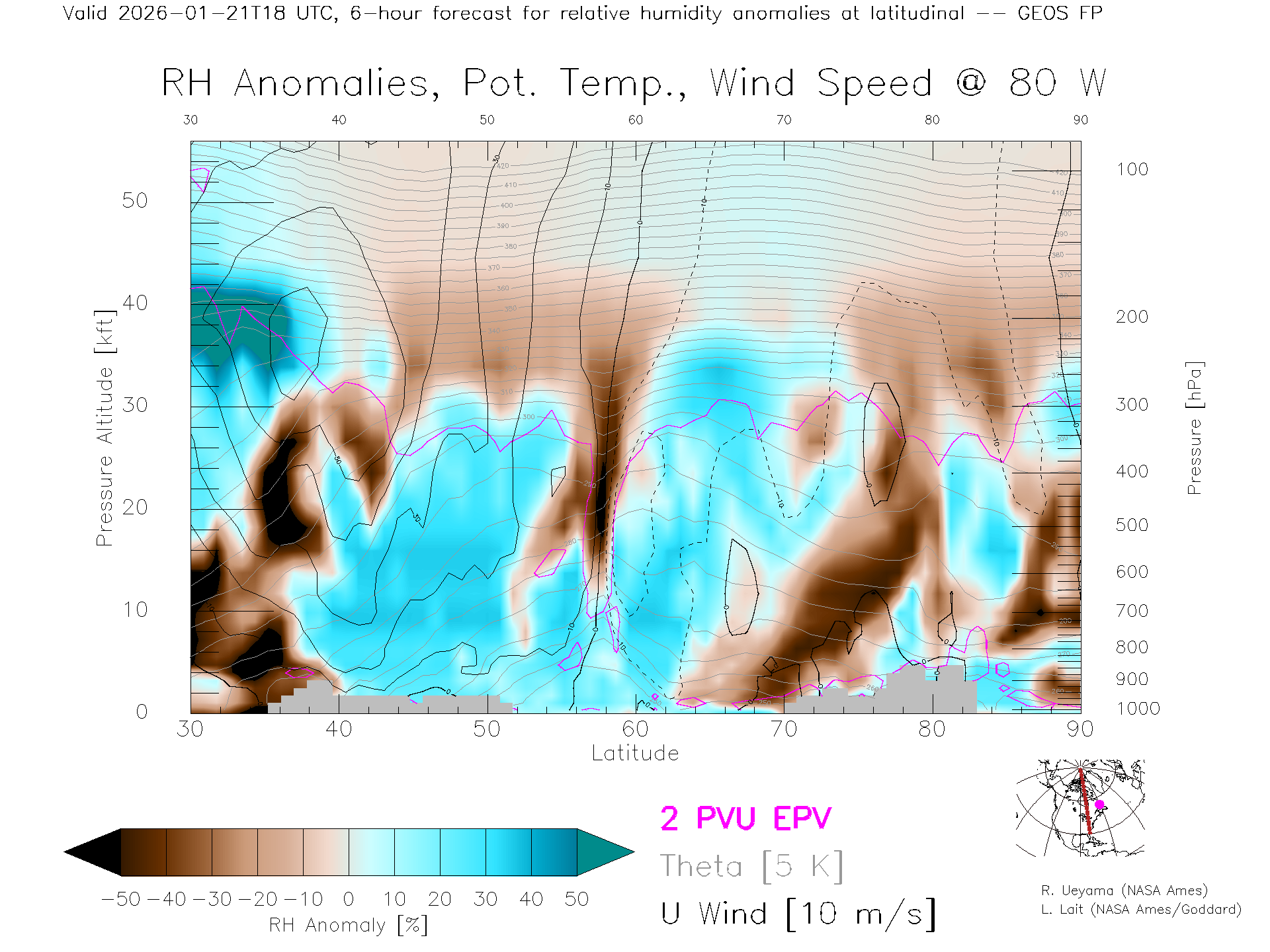 GEOS Forecast Rel. Hum. X-Section (80 W)