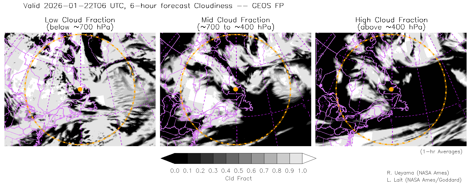 GEOS Forecast Cloud Fraction (High, Mid, Low)