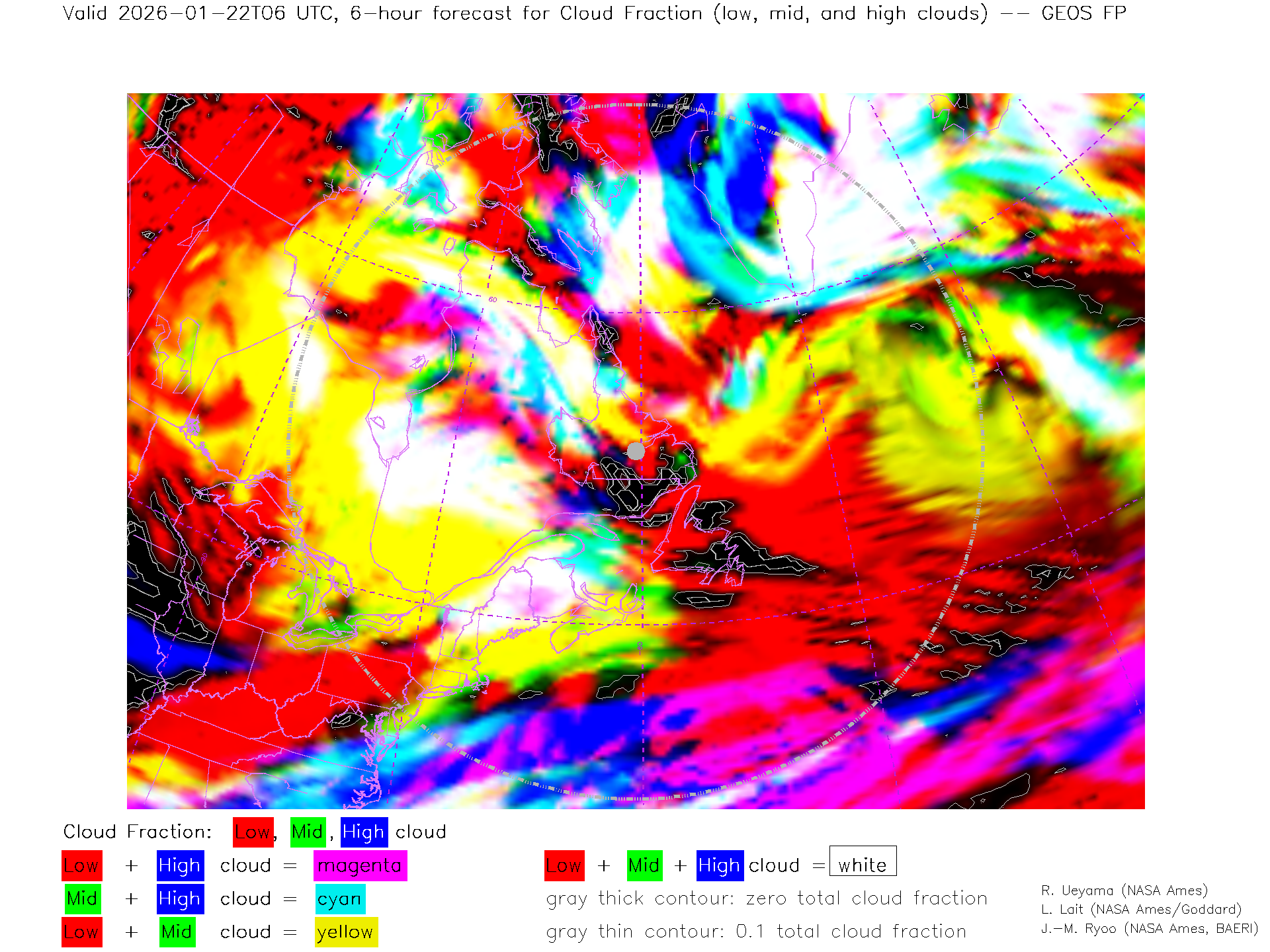GEOS Forecast Low-, Mid- and High-level Cloud Fraction