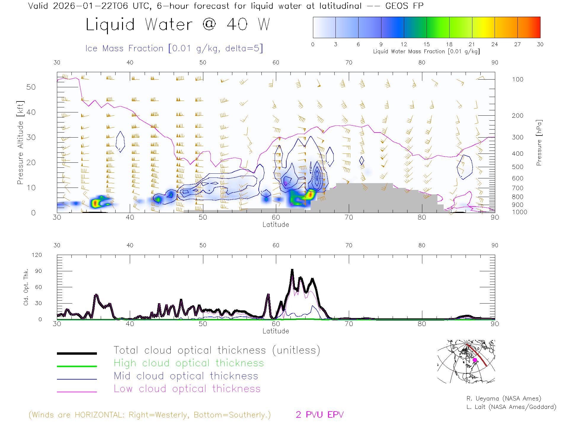 GEOS Forecast Cloud Water Content X-Section (40 W)