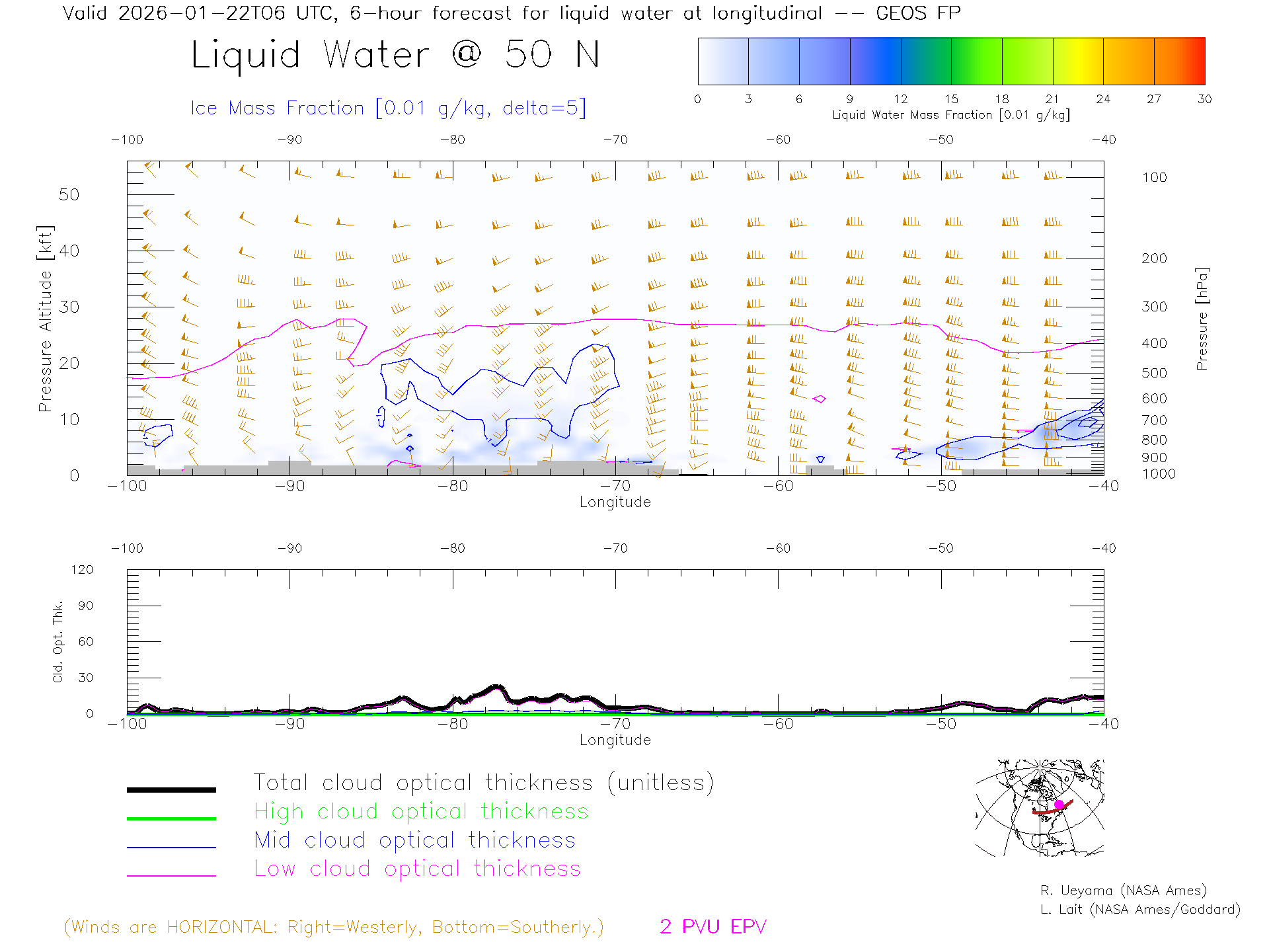GEOS Forecast Cloud Water Content X-Section (50 N)