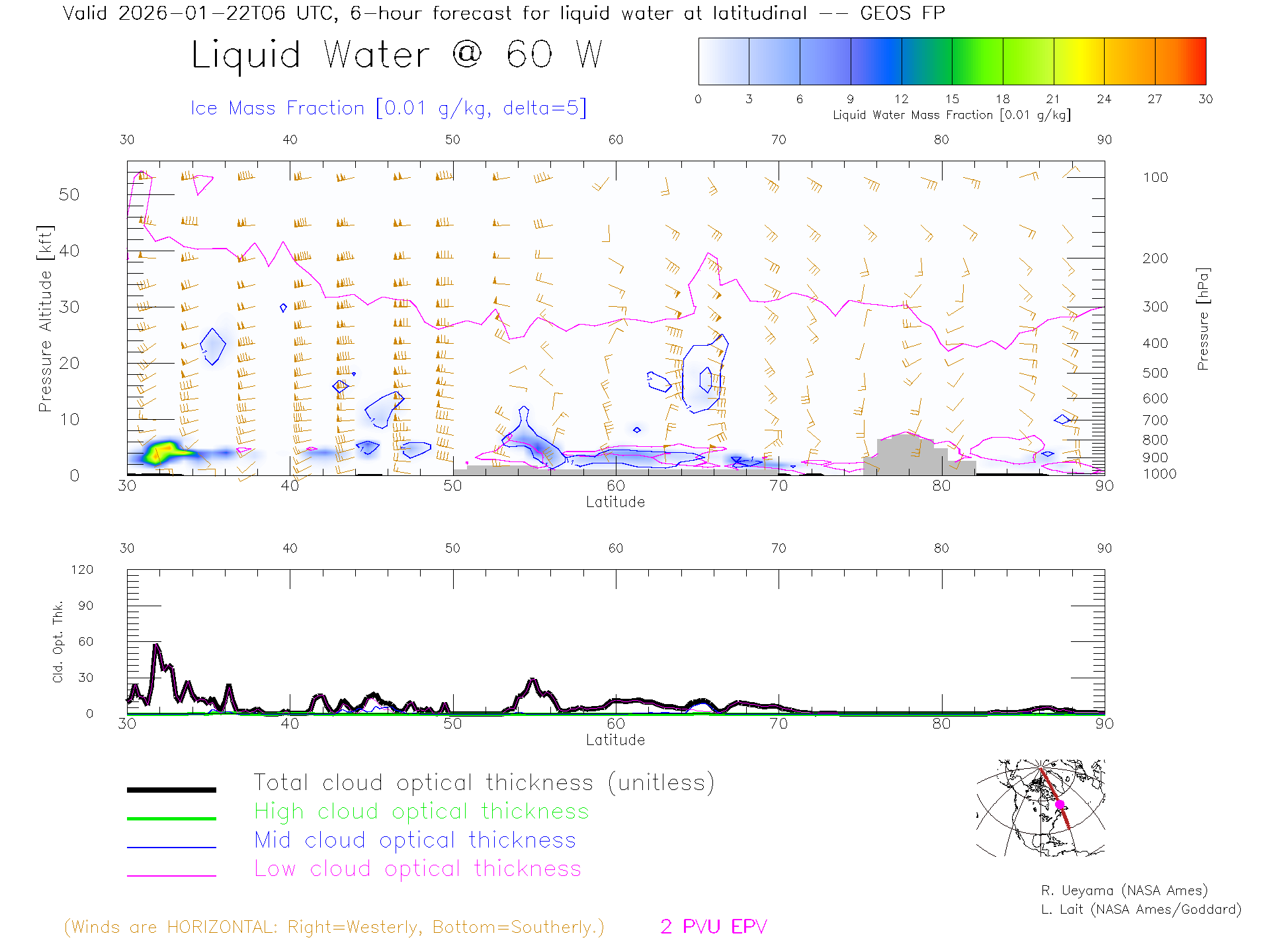 GEOS Forecast Cloud Water Content X-Section (60 W)