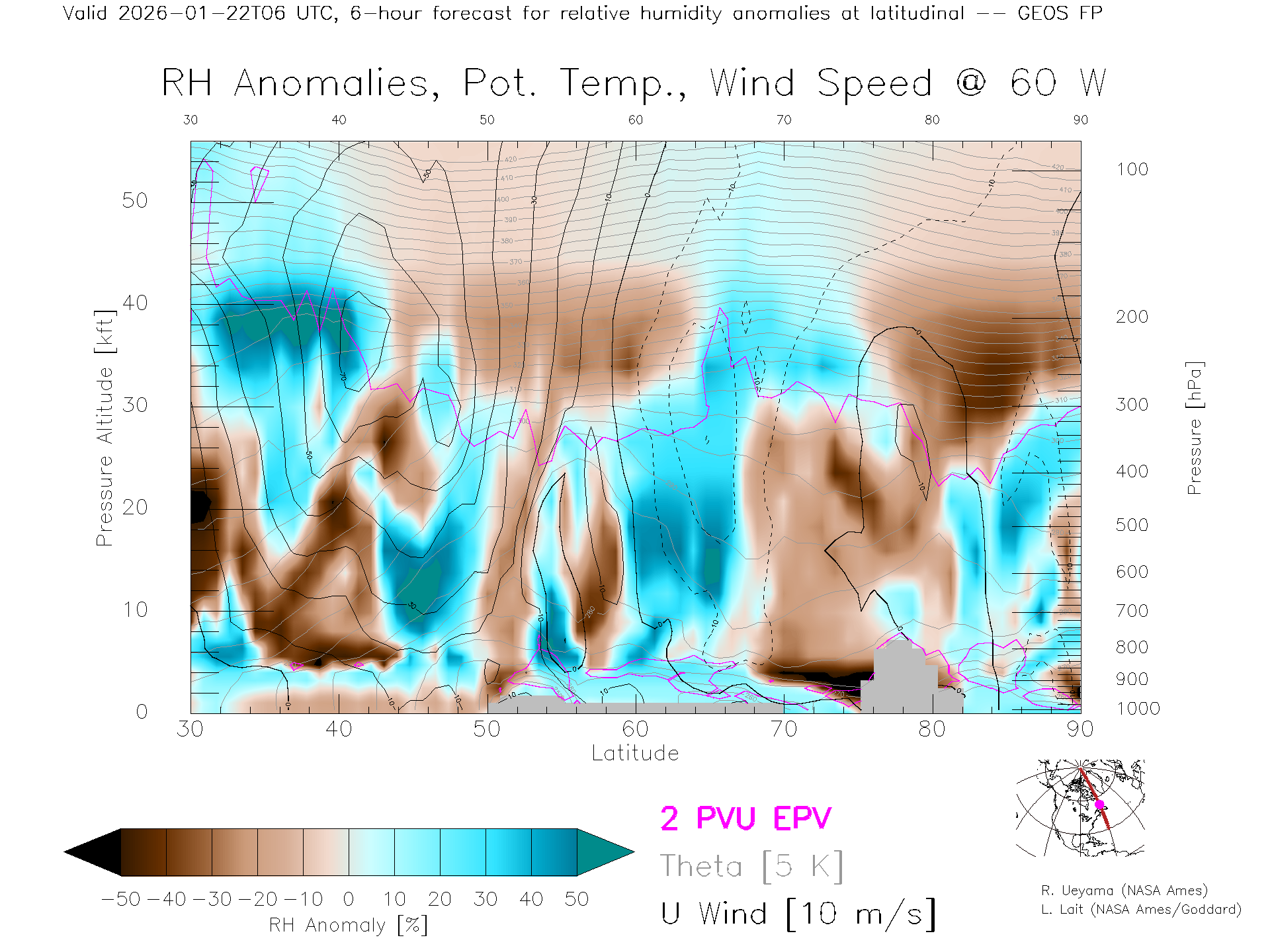 GEOS Forecast Rel. Hum. X-Section (60 W)