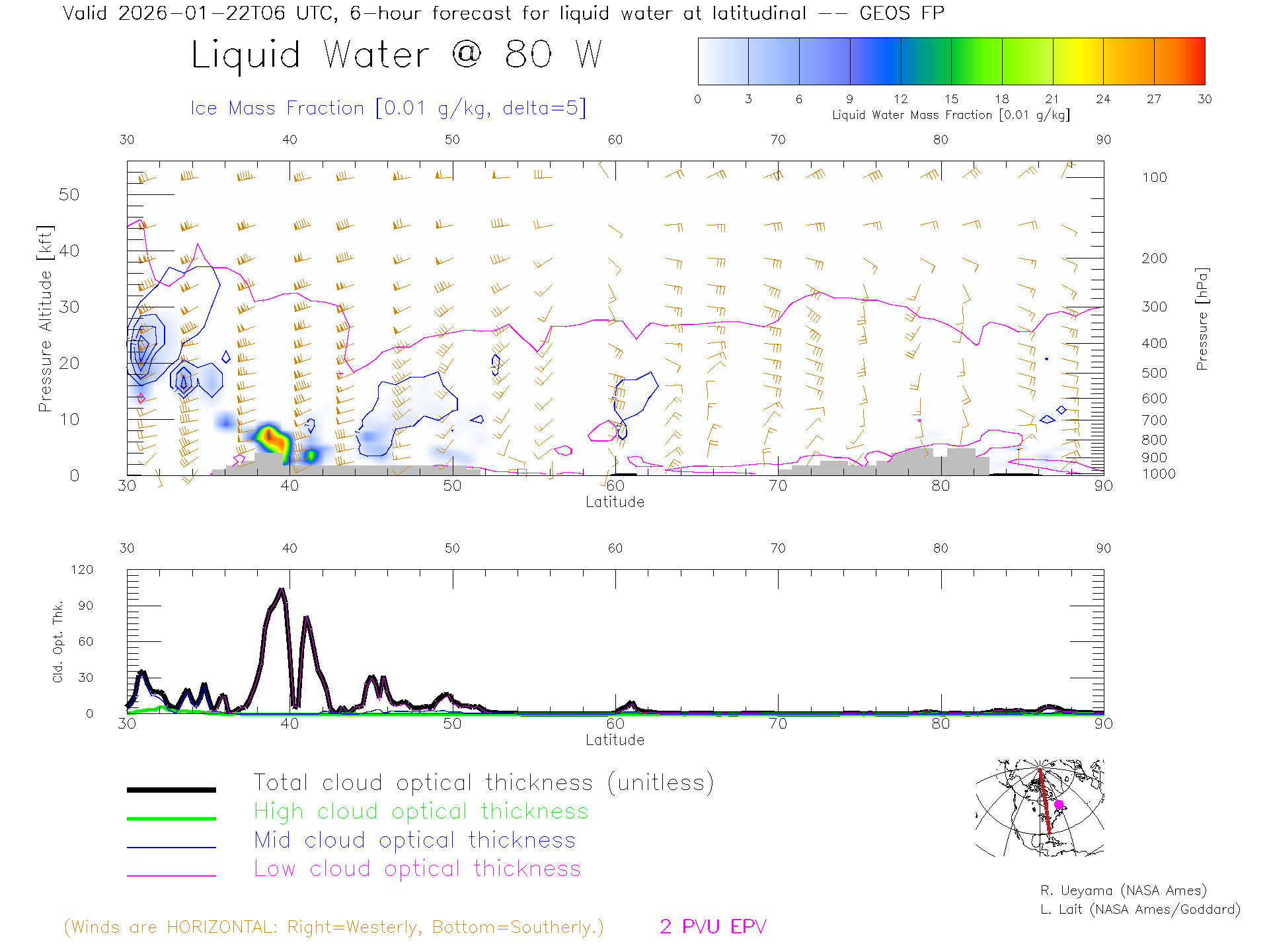 GEOS Forecast Cloud Water Content X-Section (80 W)