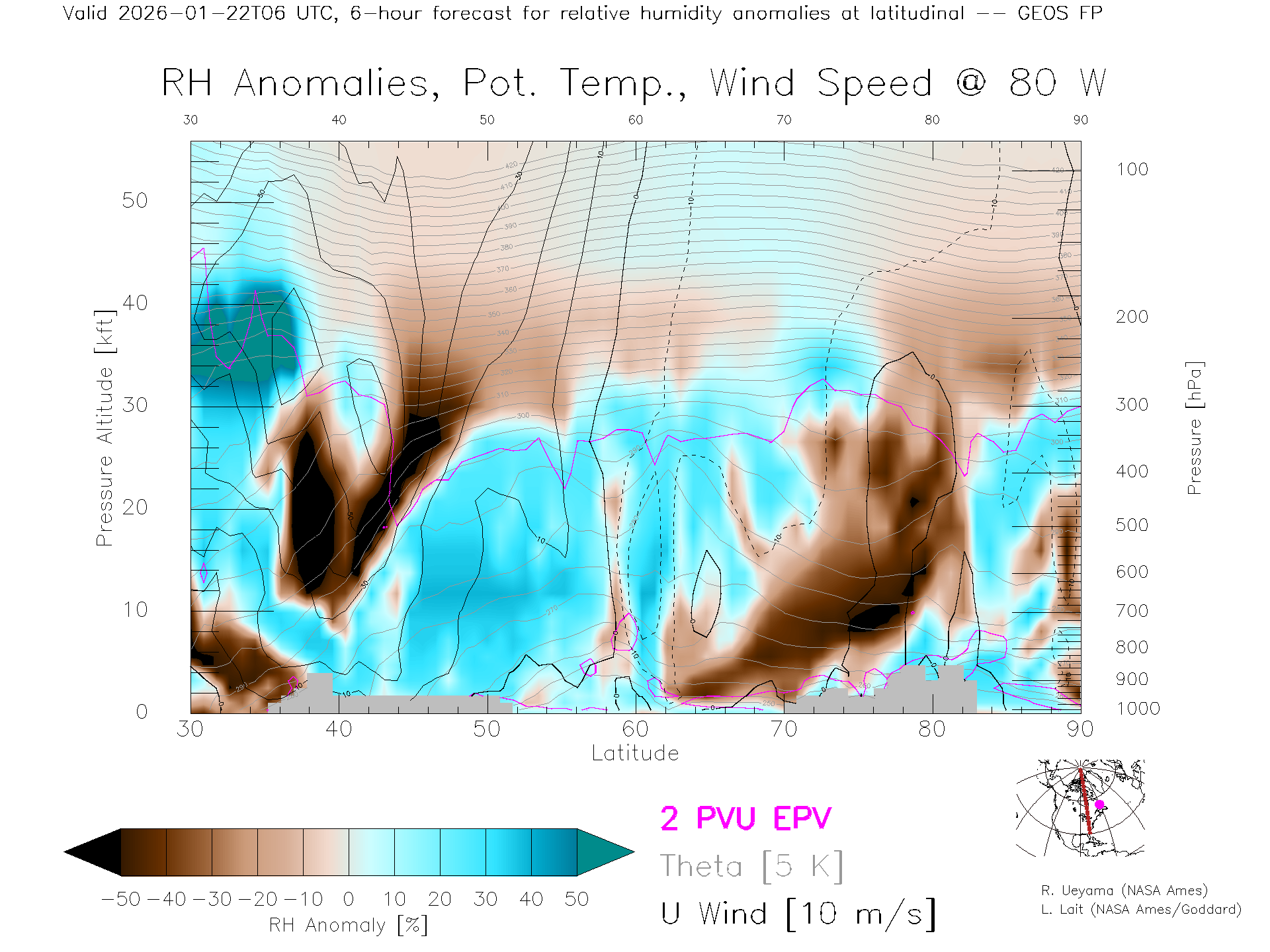 GEOS Forecast Rel. Hum. X-Section (80 W)