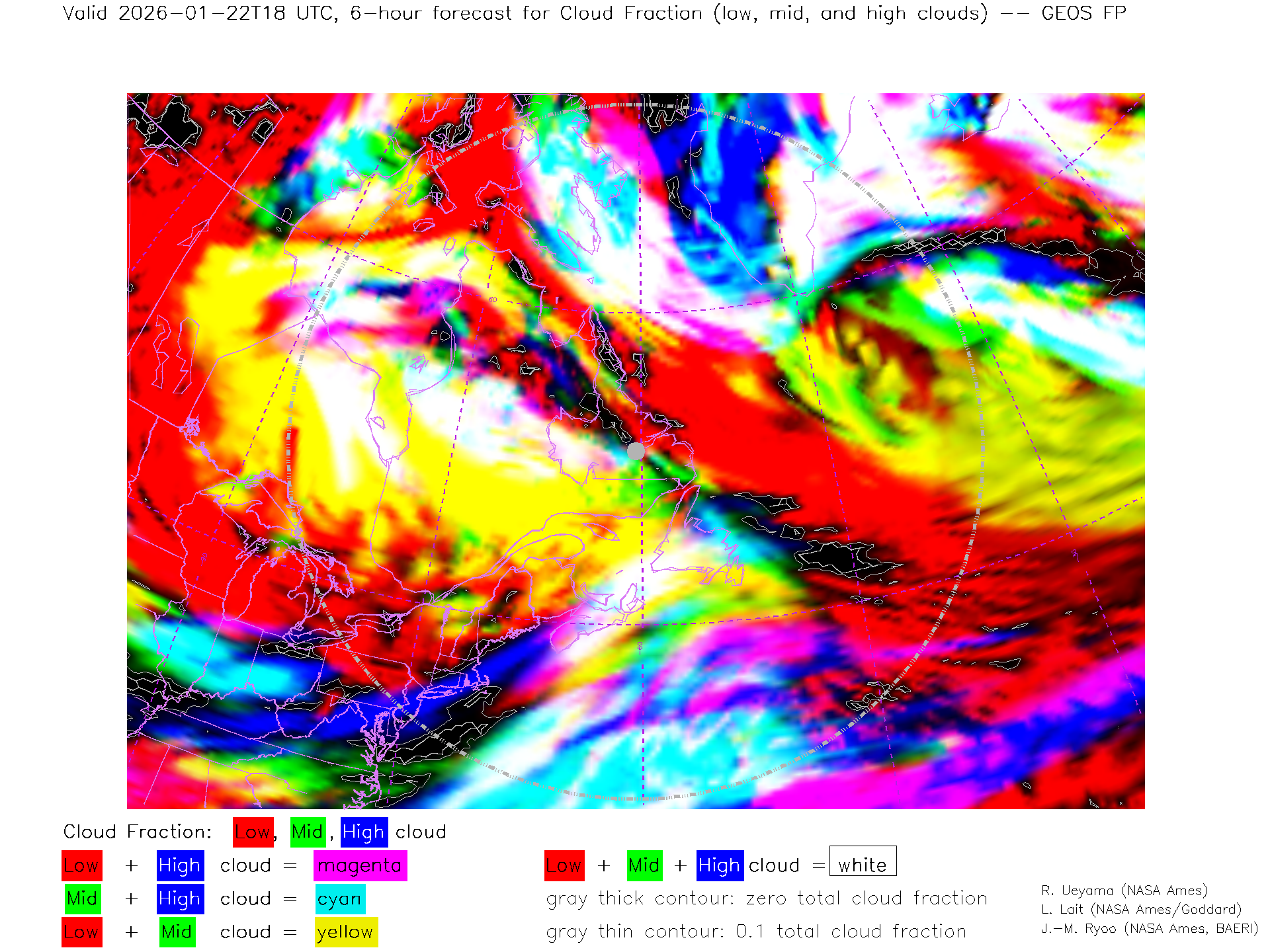 GEOS Forecast Low-, Mid- and High-level Cloud Fraction